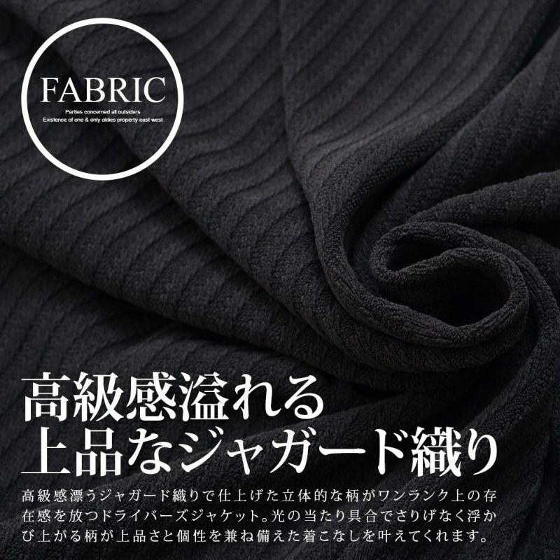 高級感漂うジャガード織りで仕上げた立体的な柄が、ワンランク上の存在感を放つドライバーズジャケット。