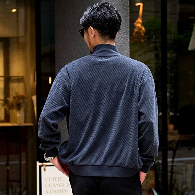 シンプルなデザインながら、上品な素材感が際立ち、スラックスを合わせたきれいめコーデにもマッチ。