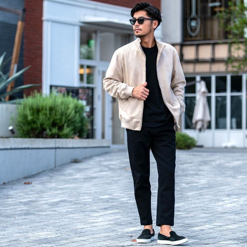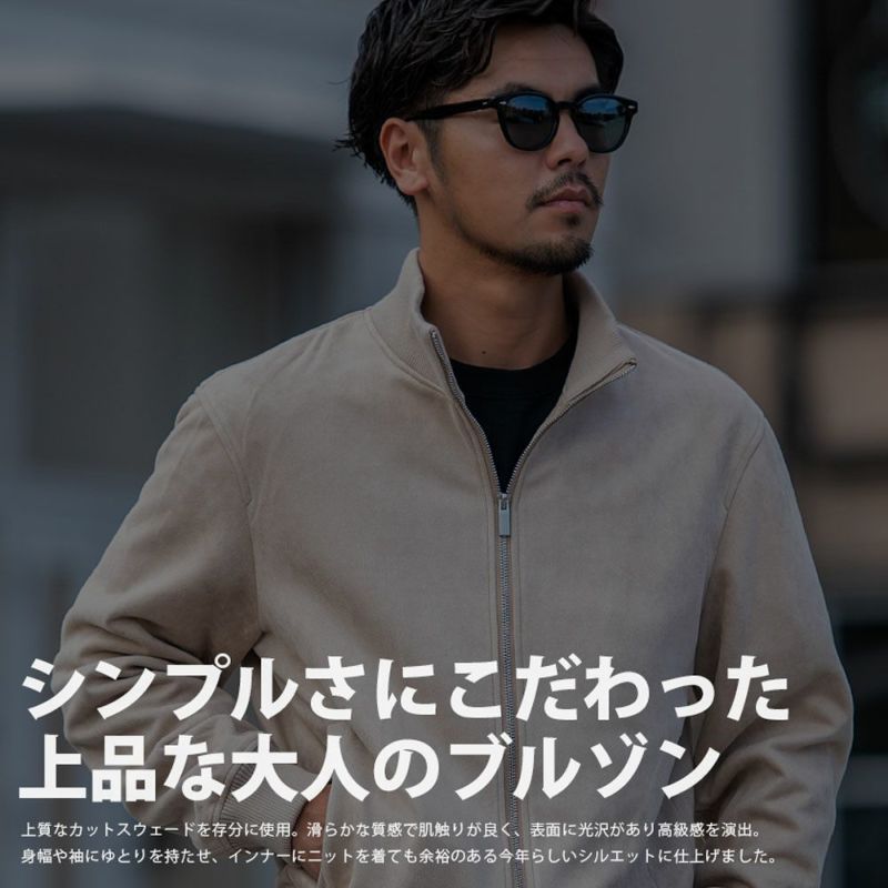 上質なカットスウェード素材を存分に楽しめるシンプルなブルゾン。滑らかな質感で肌触りが良く、表面に光沢があり高級感を演出することができる一着。 CavariA(キャバリア)カットスウェードスタンド長袖ブルゾン/全3色
