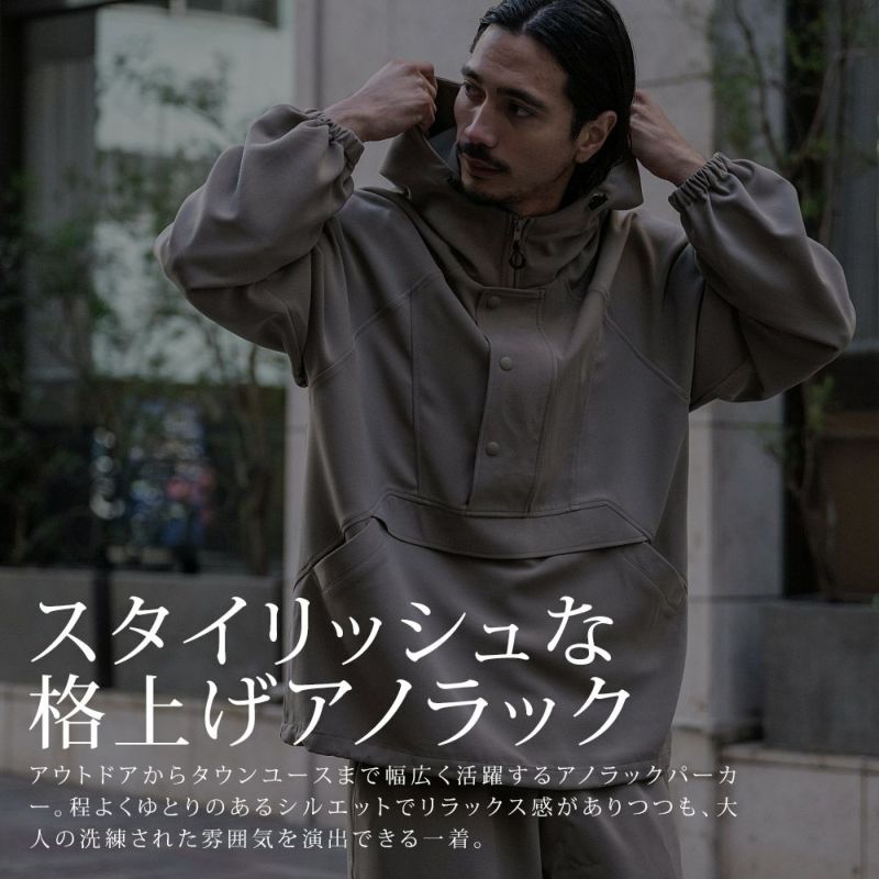 アウトドアからタウンユースまで幅広く活躍するアノラックパーカー。