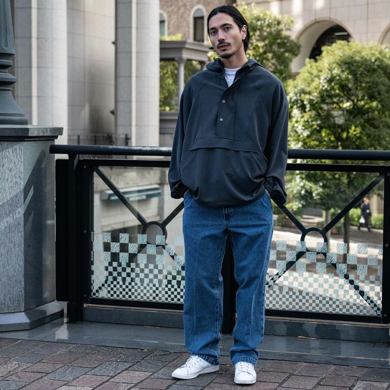 スニーカーやブーツを合わせればストリートやアウトドアシーンでも活躍します。