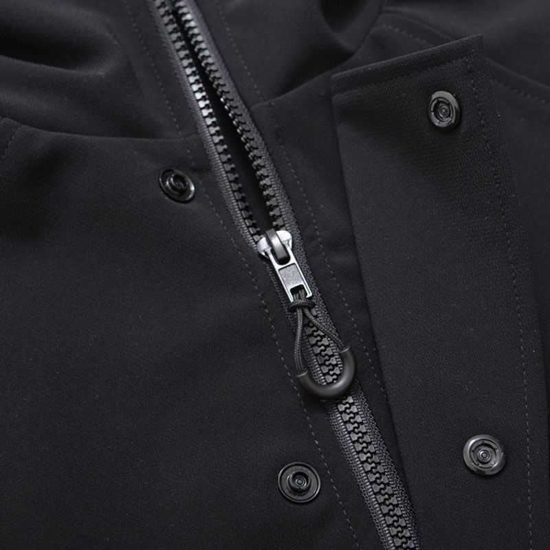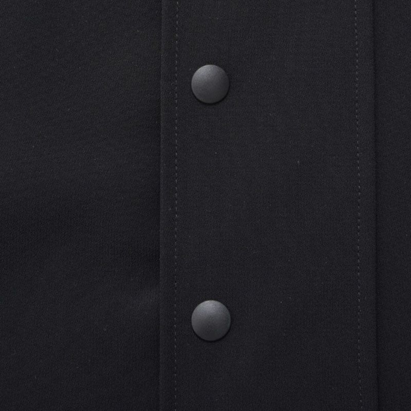 胸元までのハーフジップ&ボタン仕様で着脱しやすく、スタイリッシュなアクセントに。