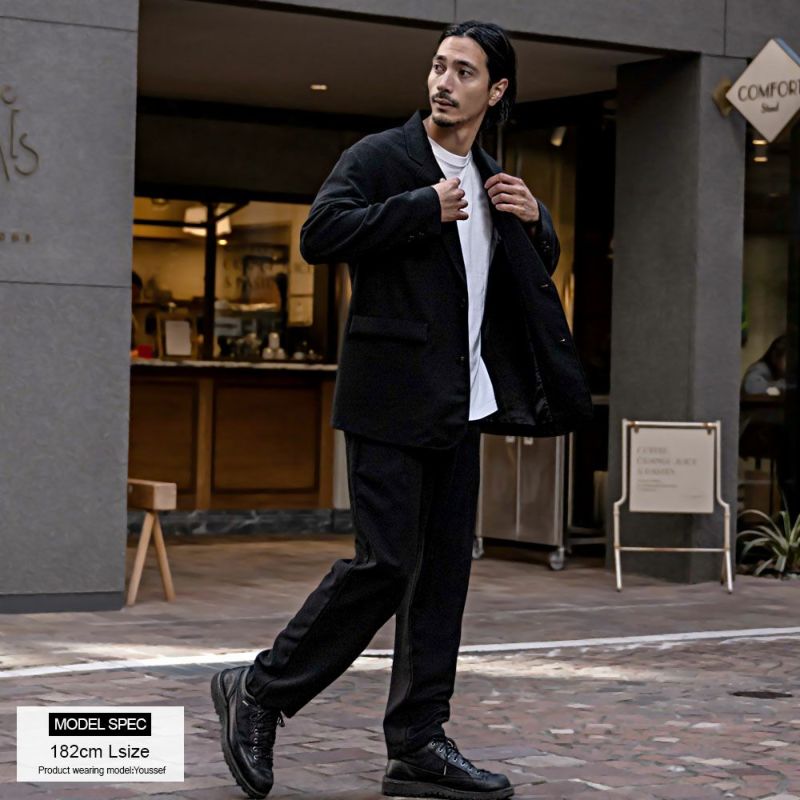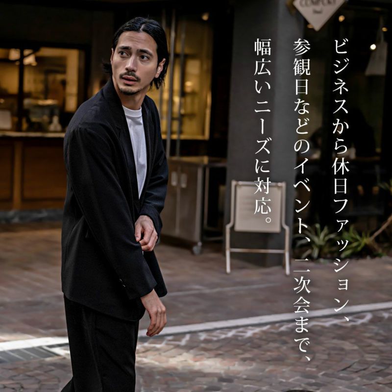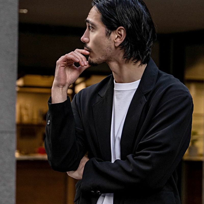 クリーンに見えるよう胸ポケットを無くし、ラペルを細長く見えるよう設計したリラックスジャケットです。
