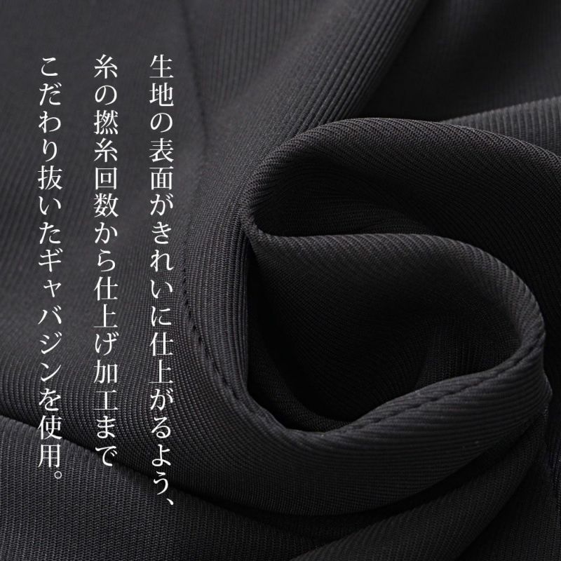 生地の表面がきれいに仕上がるよう、糸の撚糸回数から仕上げ加工までこだわり抜いたギャバジンを使用。