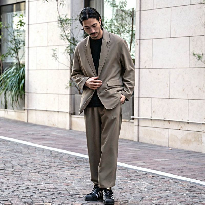同素材のパンツとのセットアップもおすすめです。