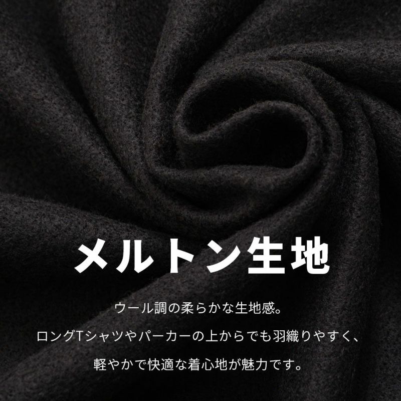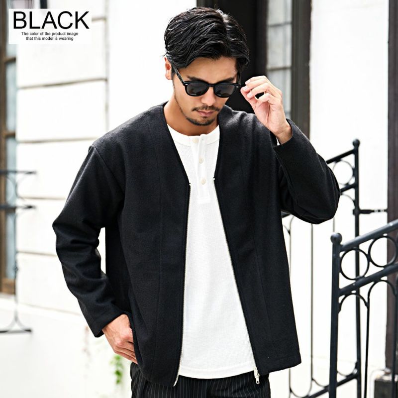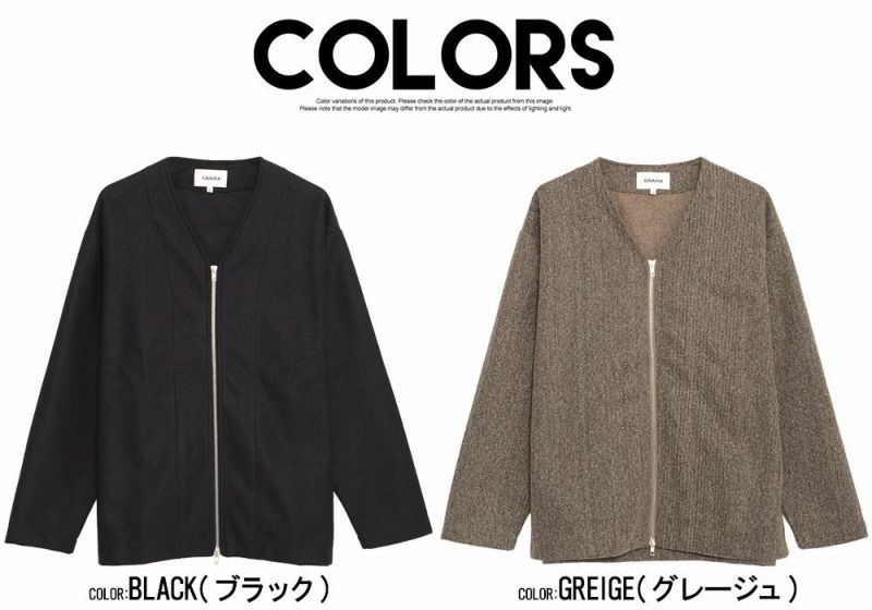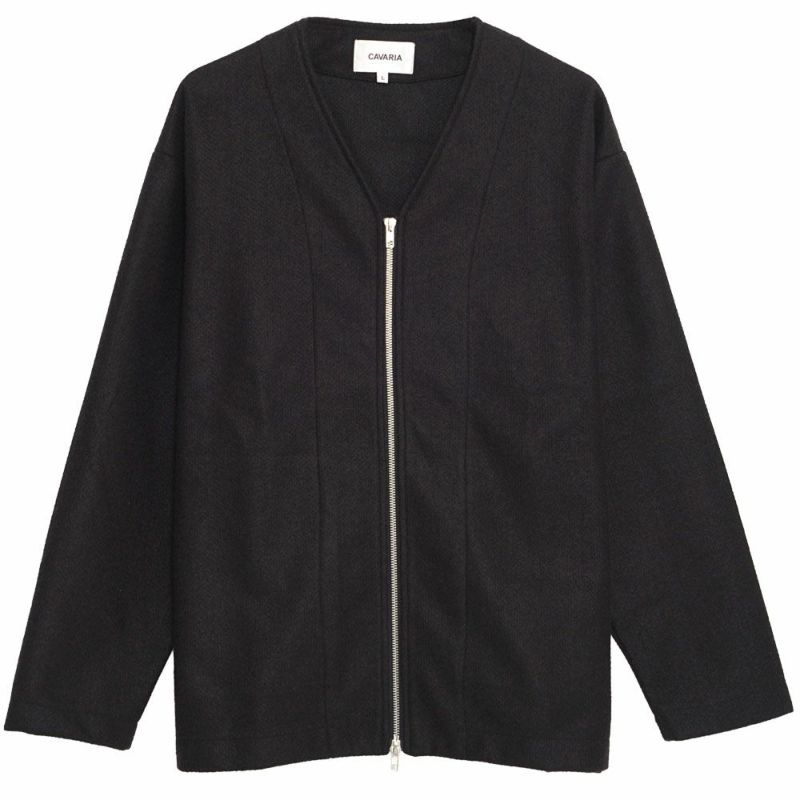 ウール調の柔らかな生地感で、ボタンではなくジップを採用したデザインがモダンな印象を与える1枚。