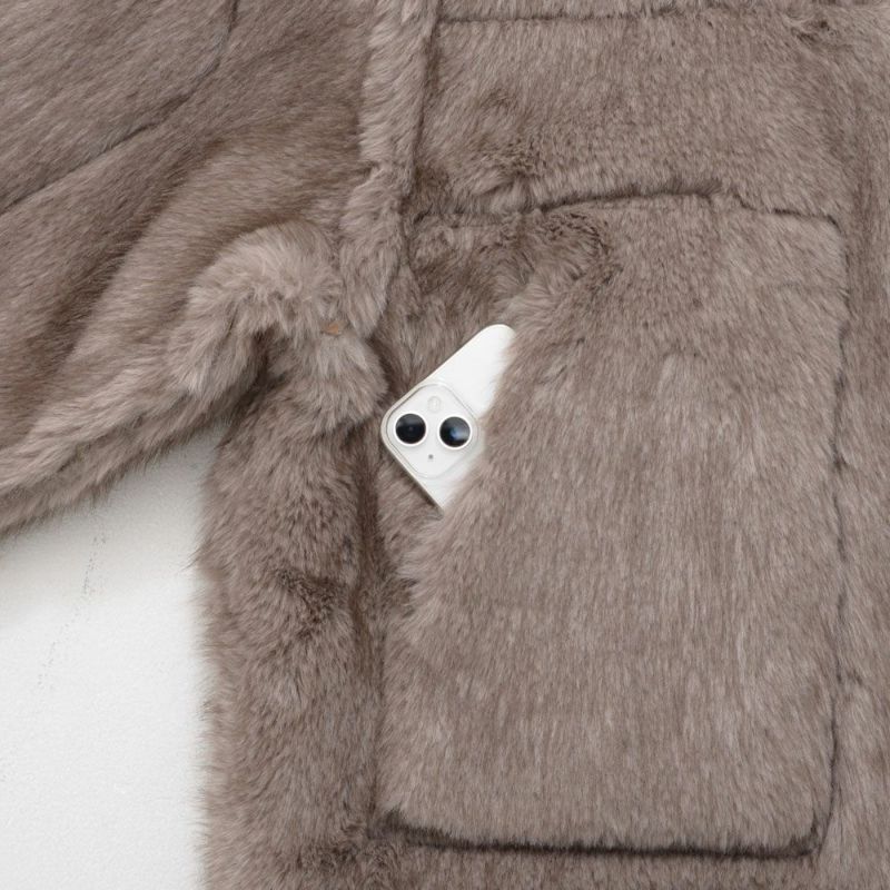 表側には毛足のあるふわふわのボア素材を使用し、暖かさとシーズンムードをしっかり演出。