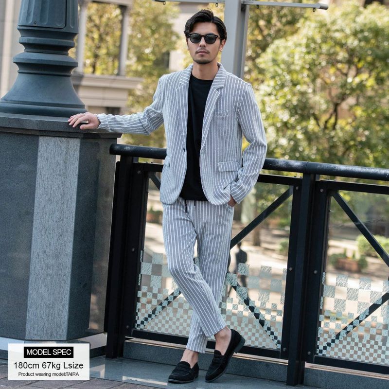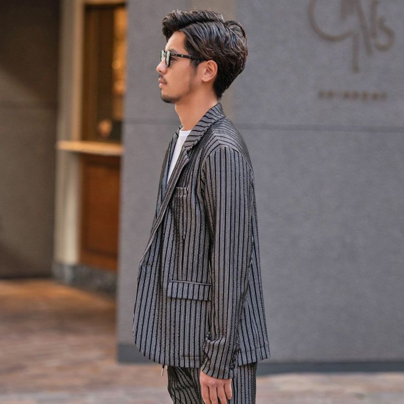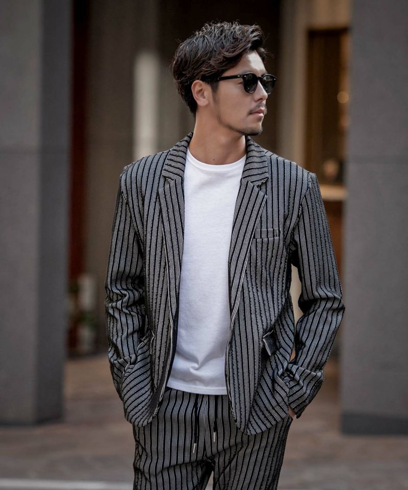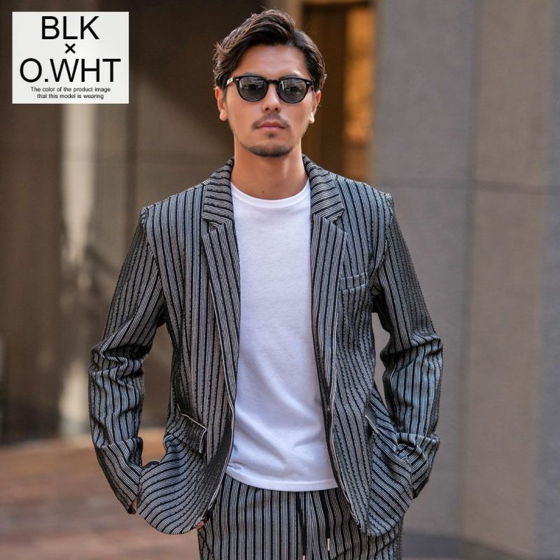 ※こちらの商品はジャケットのみの販売となります。別売りのパンツと組み合わせることで、セットアップとしてもお使い頂けます。 CavariA(キャバリア)ふくれストライプテーラード長袖JKT/全3色