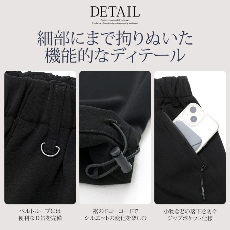 ベルトループのD缶やポケットのジップなど、デザインだけでなく実用性にもこだわり抜いたディテール。