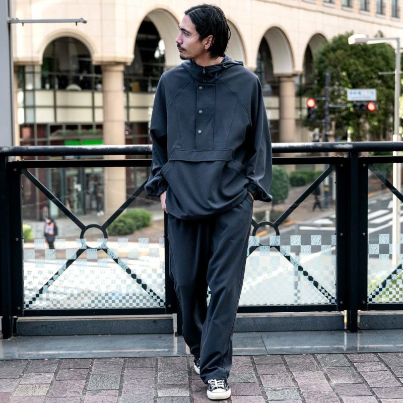 同素材のパーカーと合わせれば、統一感のあるセットアップスタイルが完成!