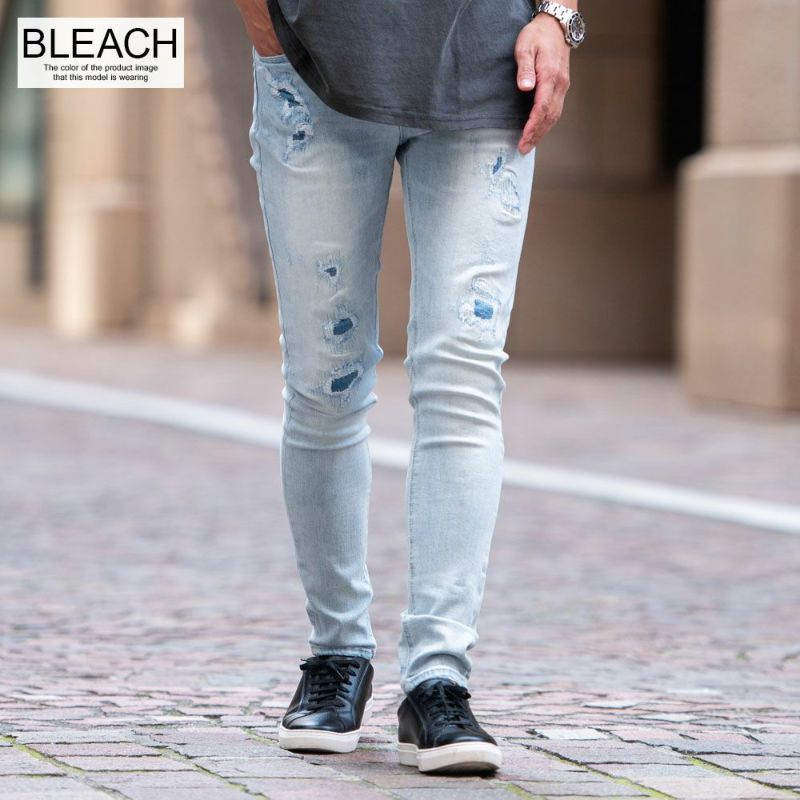 ダメージ部分にリペア加工を入れることでヴィンテージのような風格と味のあるスキニーパンツになっています。