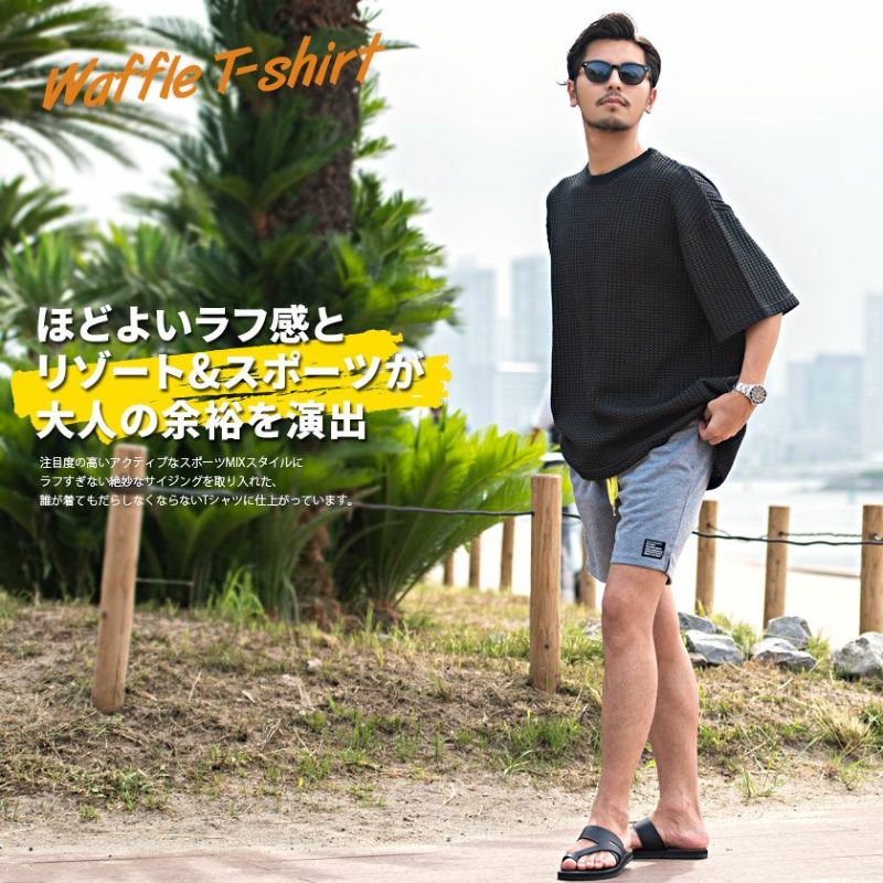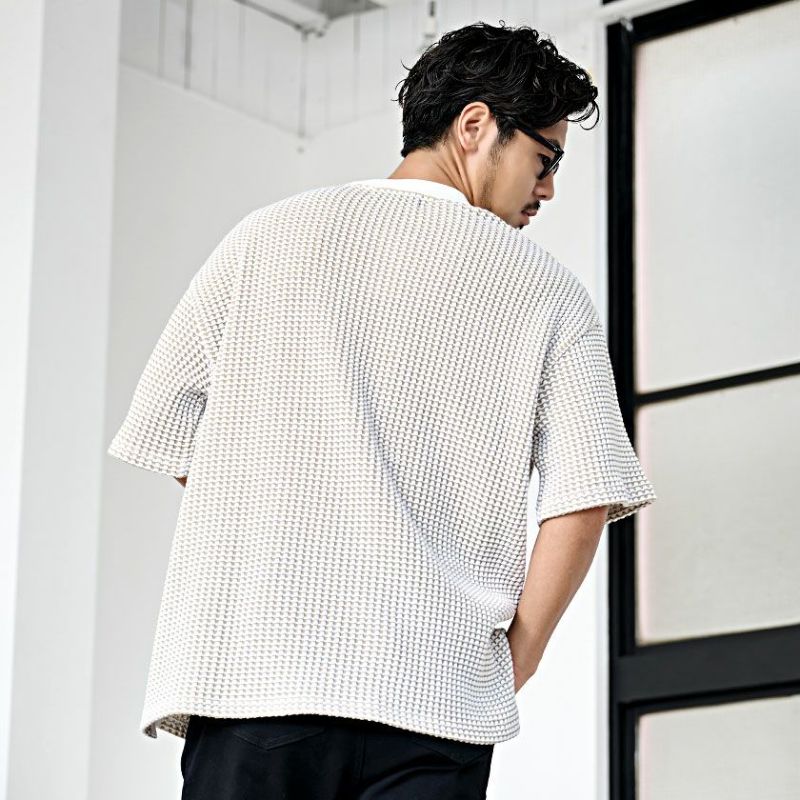ニットのようにも見える凹凸感と柔らかな肌触りが特徴のワッフル素材を使用した半袖Tシャツ。