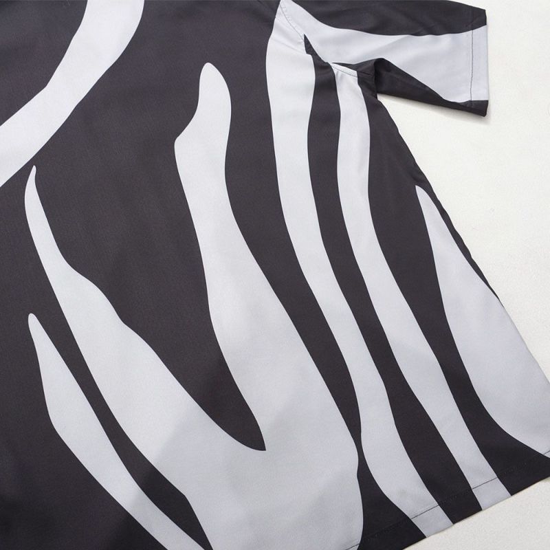 全面にあしらわれた大柄のゼブラ柄が、夏の空気に映えるスタイルを演出します。