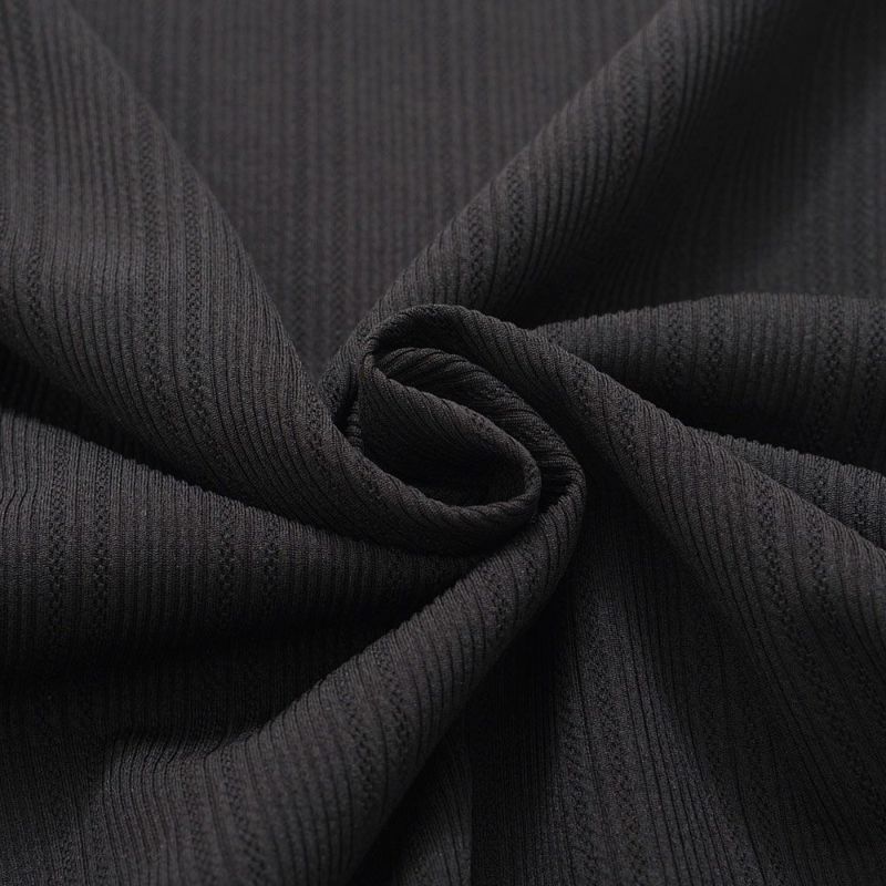 生地に凹凸を持たせ、大小の異なるストライプ柄が特徴のランダムテレコ素材を採用。