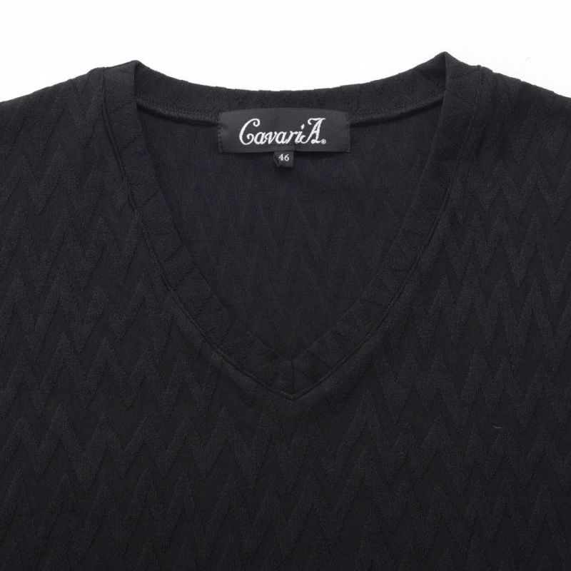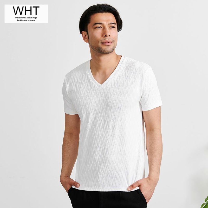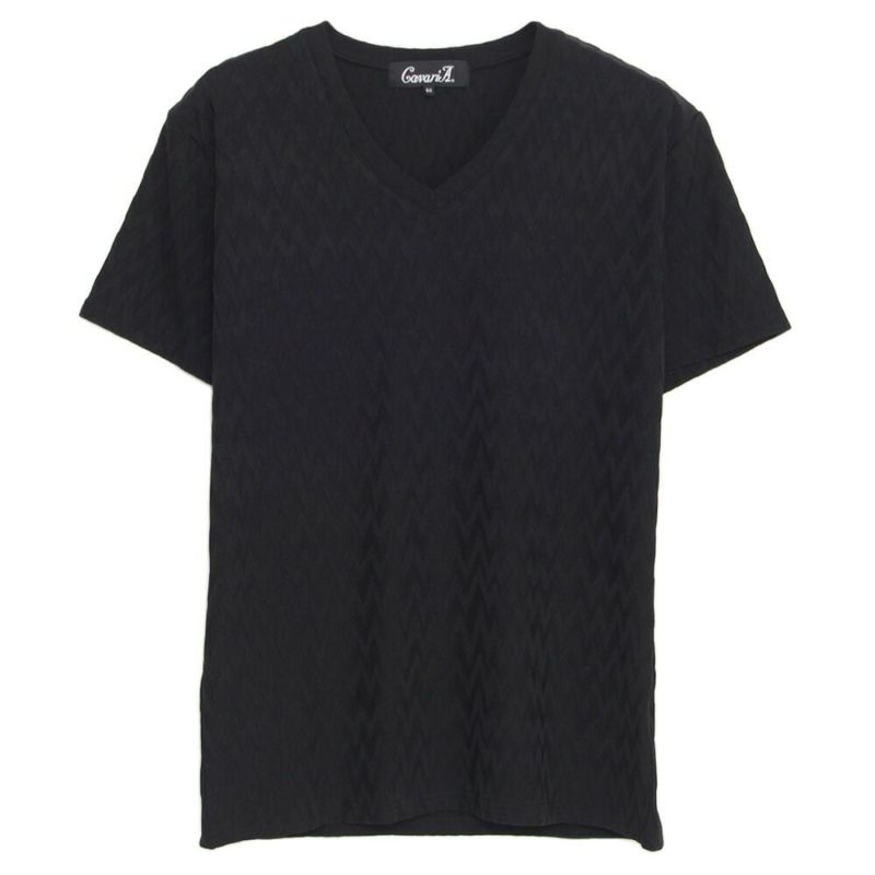 ボディと同色の糸で織り上げた立体的なシェブロン柄が、シンプルながらも高級感漂う仕上がり。スタイリッシュな細身のシルエットが、スマートで男らしい大人の印象を演出してくれる一着。 CavariA(キャバリア)パイルシェブロン半袖VネックTシャツ/全2色