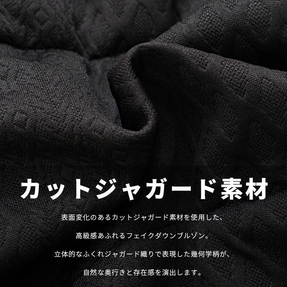 他の画像を見る 送料無料 表面変化のあるカットジャガード素材を使用した、高級感あふれるフェイクダウンブルゾン。立体的なふくれジャガード織りで表現した幾何学柄が、自然な奥行きと存在感を演出。 【送料無料】CavariA(キャバリア)ポリカットジャガードフェイクダウンブルゾン/全2色 販売価格 ¥ 11,880 税込 在庫切れ カートに入れる お気に入りに登録する