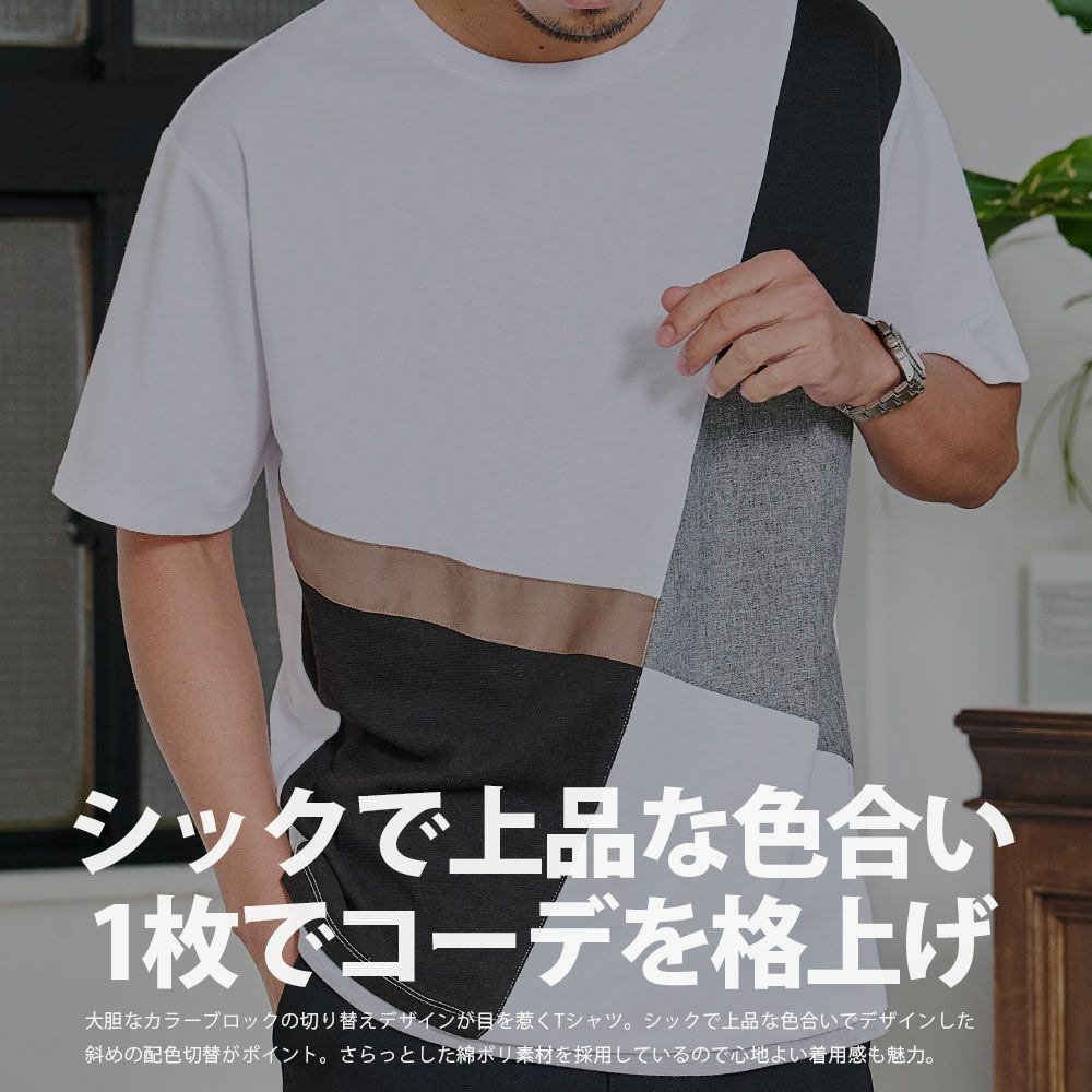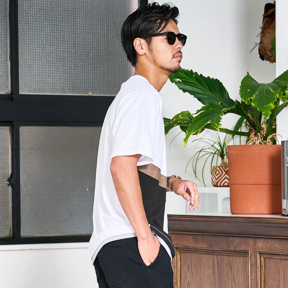 他の画像を見る 大胆なカラーブロックが目を惹く、存在感たっぷりのデザイン。斜めに走る切り替えラインはひとクセある仕上がりで、着るだけでコーデの主役になる一枚。 CavariA(キャバリア)斜め切り替え半袖TEE/全3色 販売価格 ¥ 4,290 税込 カートに入れる お気に入りに登録する