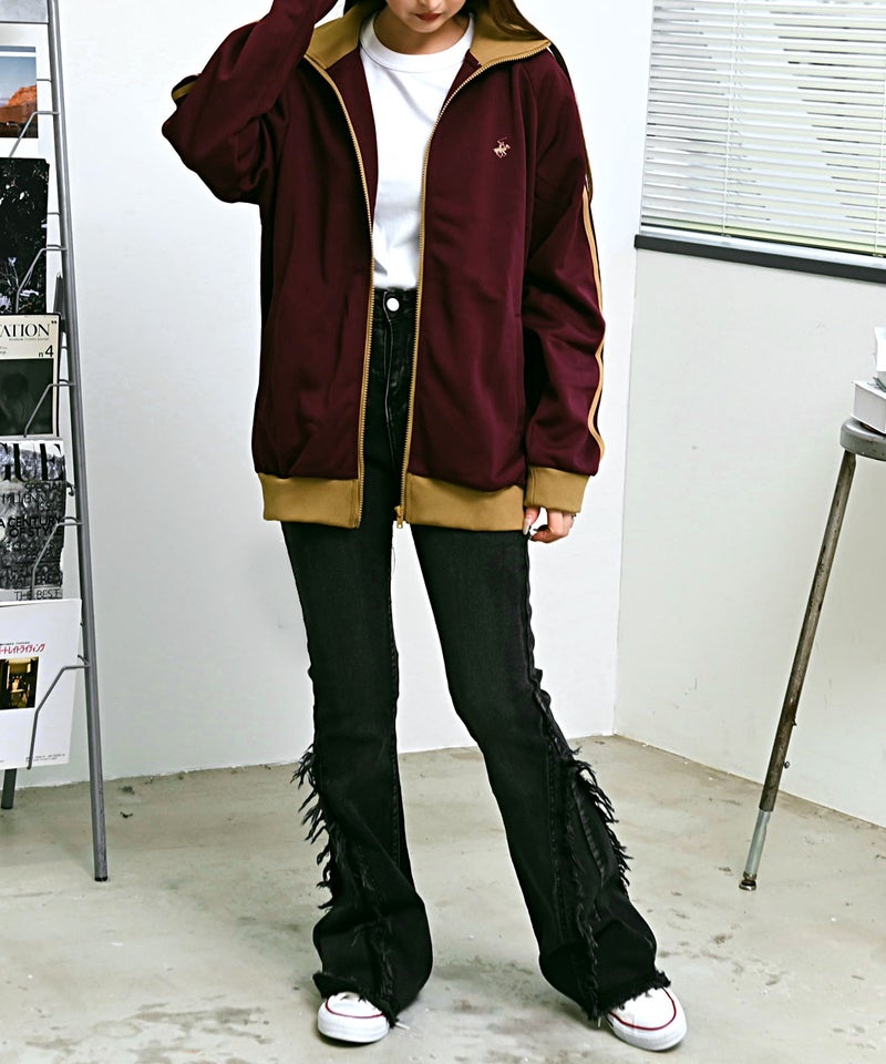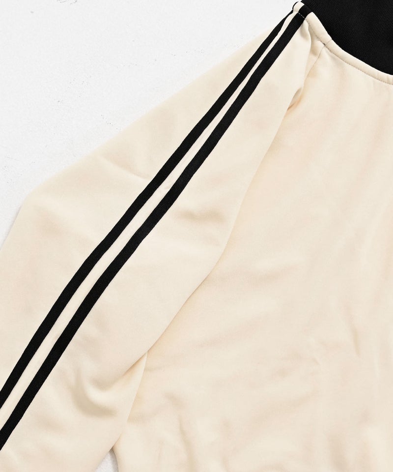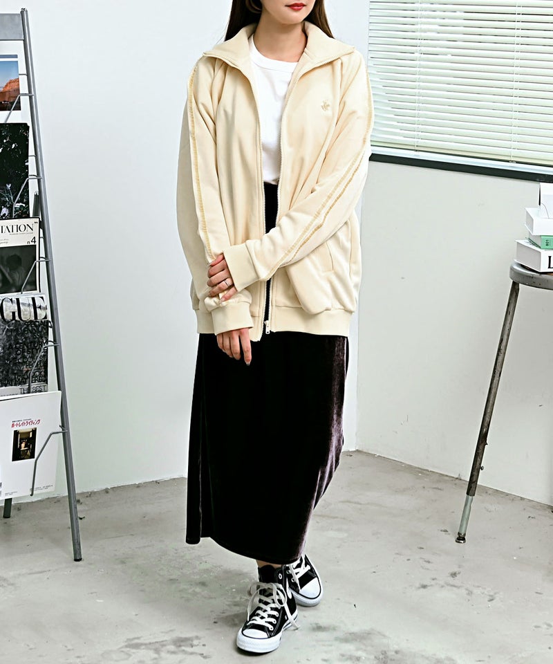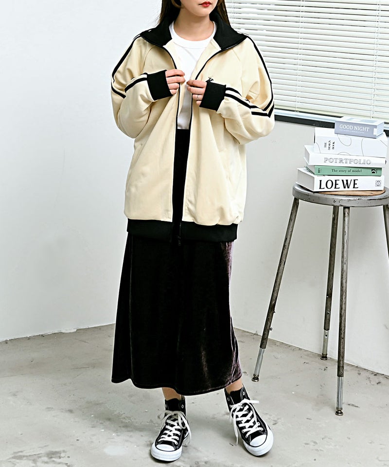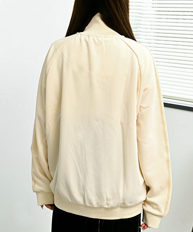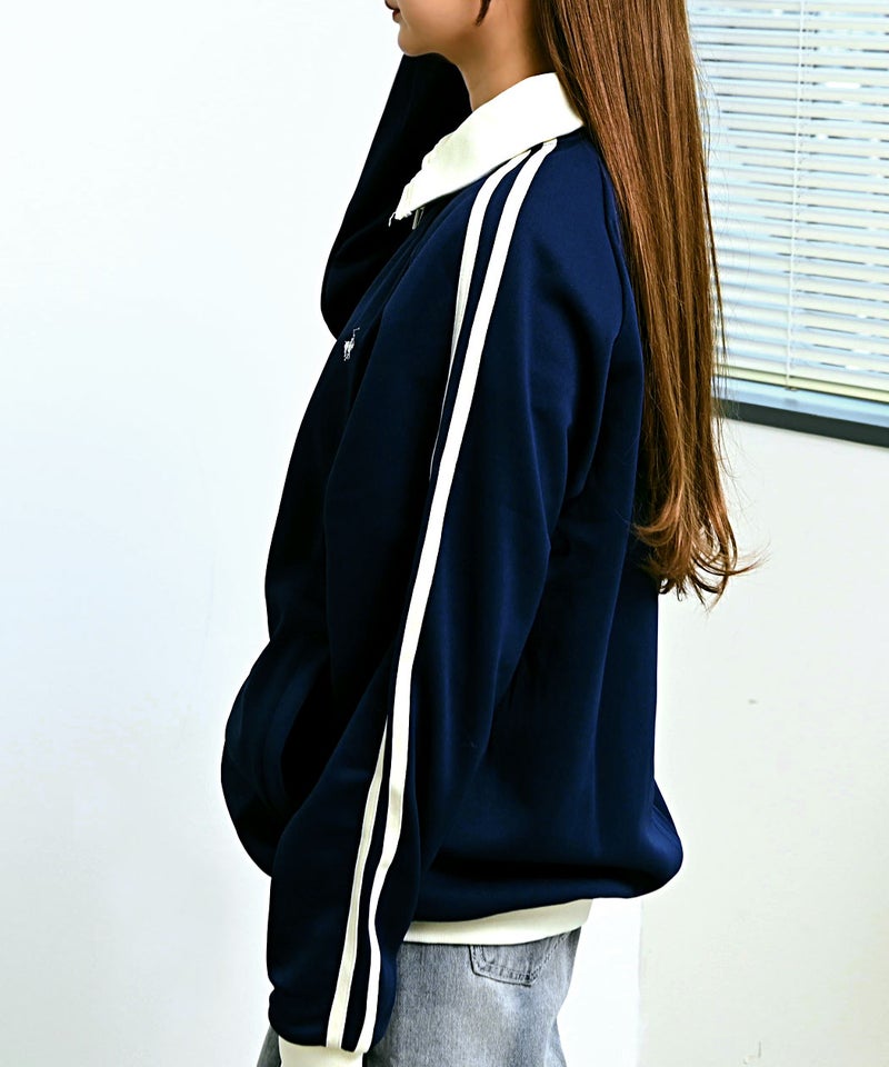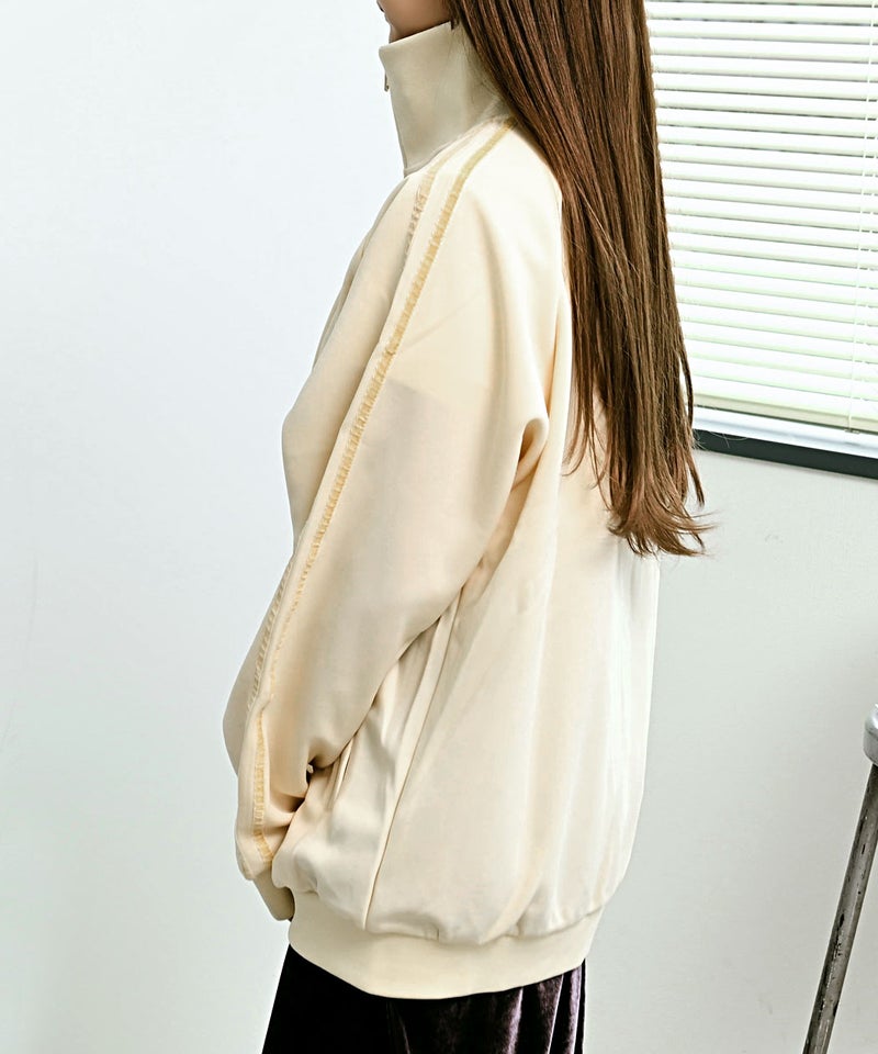 袖にはサイドラインを施し、スポーティーさとトレンド感を兼ね備えたデザインに仕上げました。