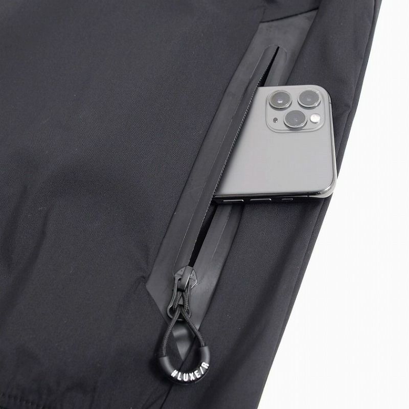 両サイドのポケットとフロントジップのテープ部分に特殊なフィルムがラミネートされた防水仕様の止水ファスナーを採用しました。