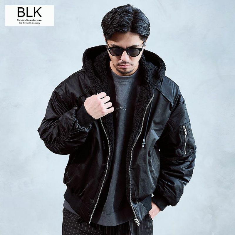 一着で2つの表情を楽しめる、今季注目のリバーシブルアウターです。表面は光沢感のあるナイロン素材を使用したMA-1タイプ、裏面はウォーム感のあるボア素材を使用したブルゾンタイプ。 【送料無料】A'gem(エージェム)フード付き裏ボアジャケット/全1色