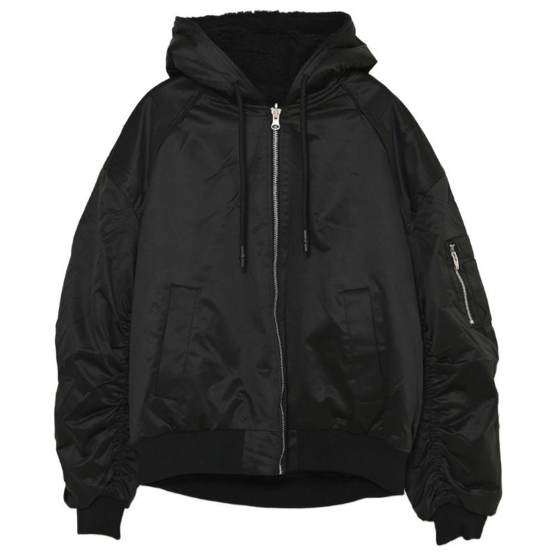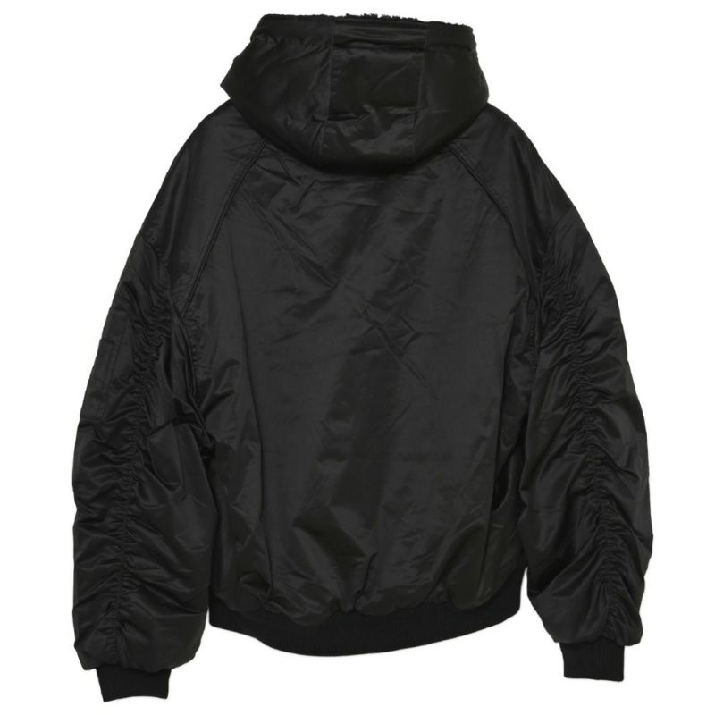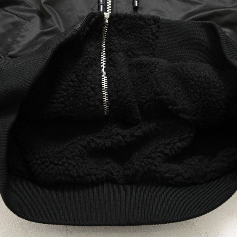 表面は光沢感のあるナイロン素材を使用したMA-1タイプ、裏面はウォーム感のあるボア素材を使用したブルゾンタイプに仕上げました。