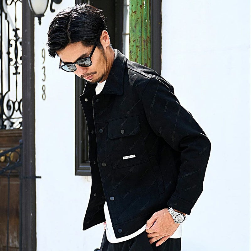 季節感漂うフェイクスエード素材を贅沢に使用した、大人のためのライトアウター。