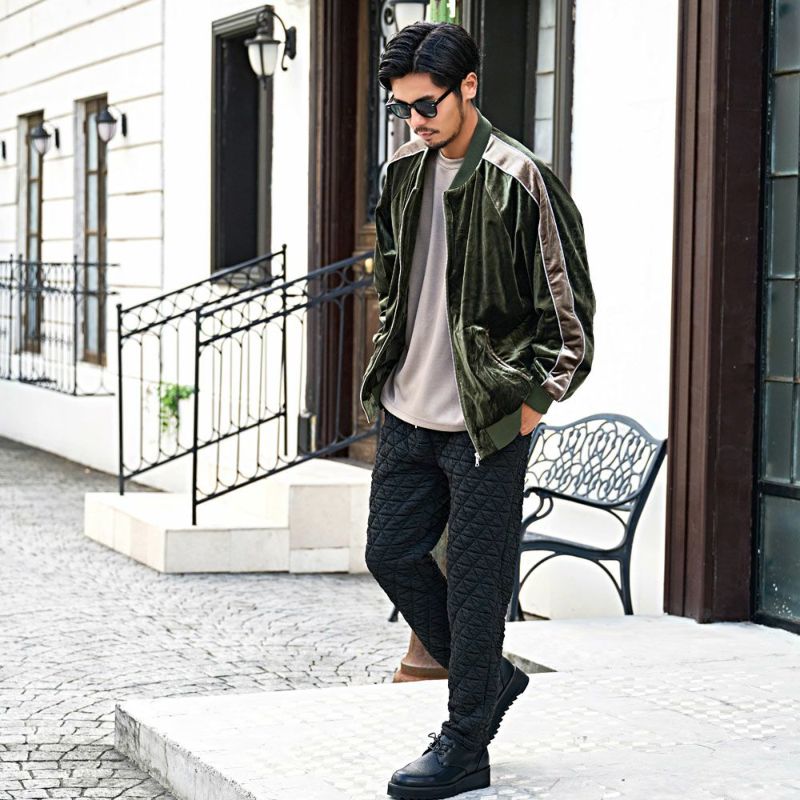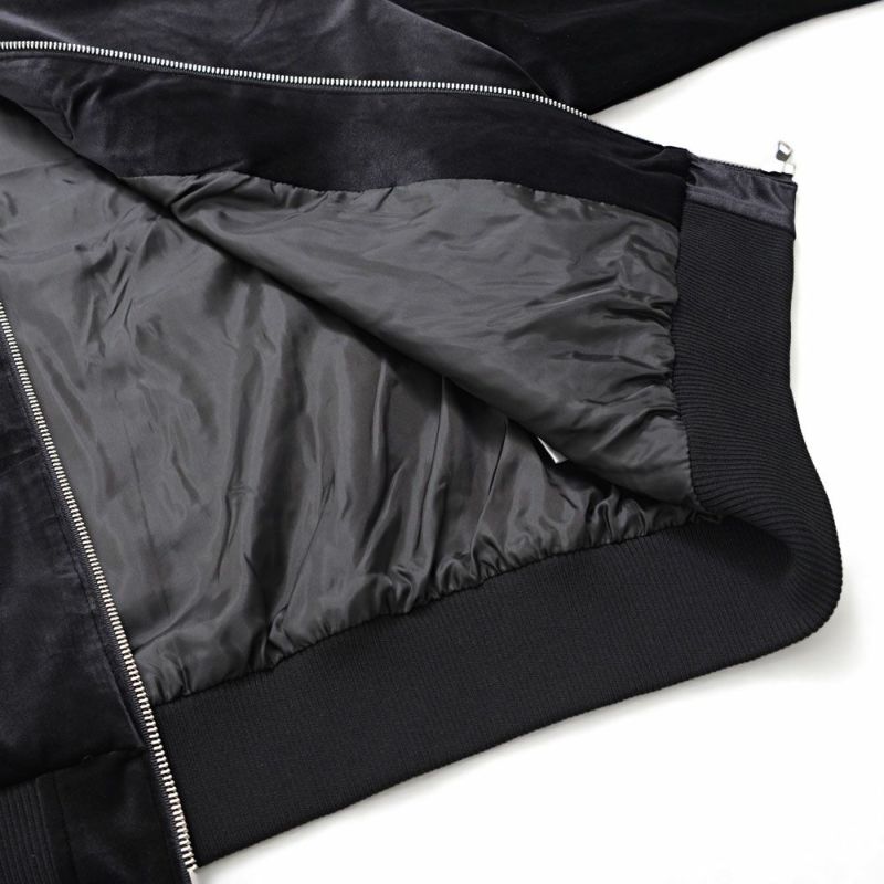 ベロアの上品な質感とミニマルなデザインが融合したこの一着は、30代・40代・50代の大人の男性にもおすすめ。