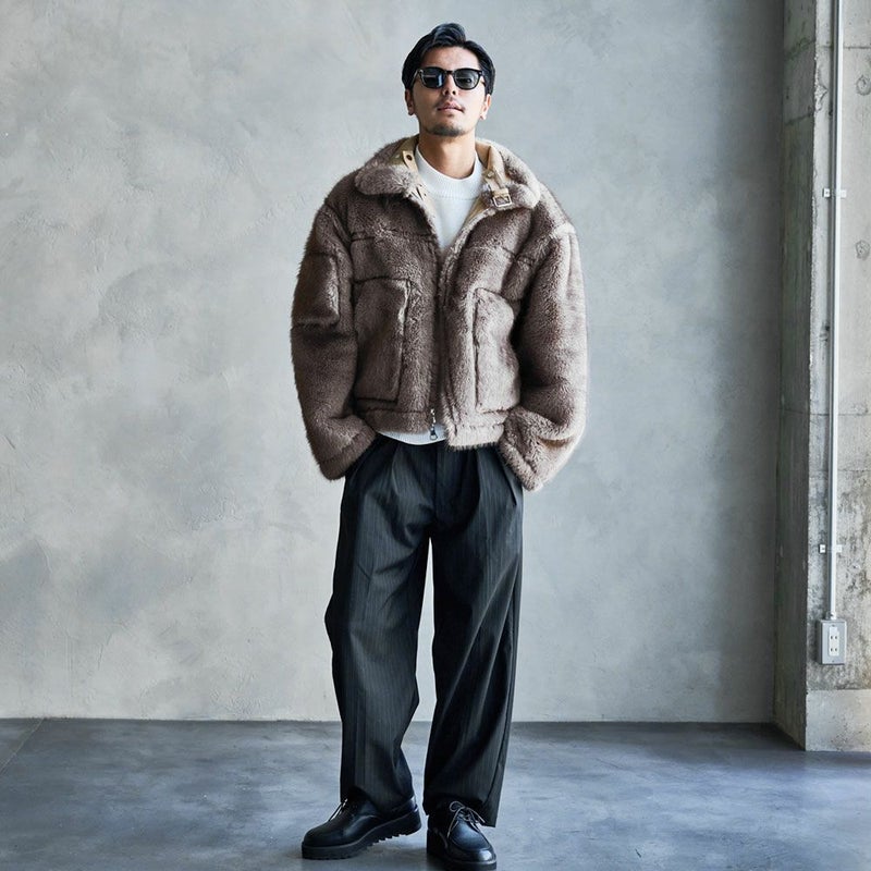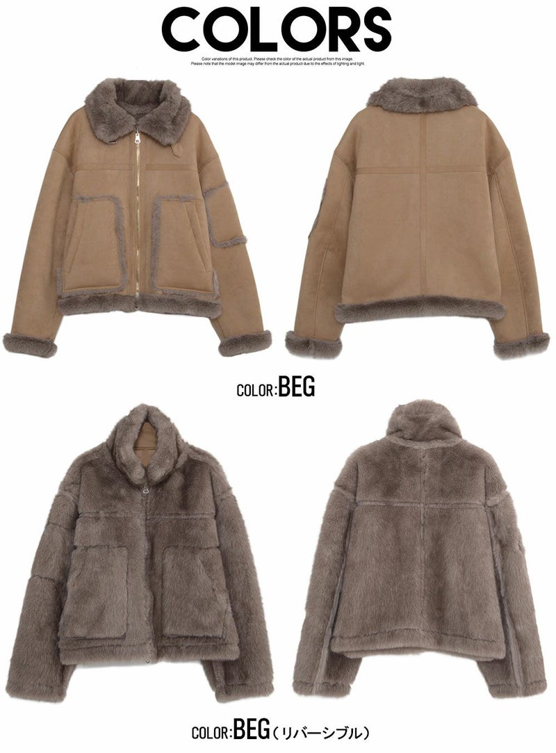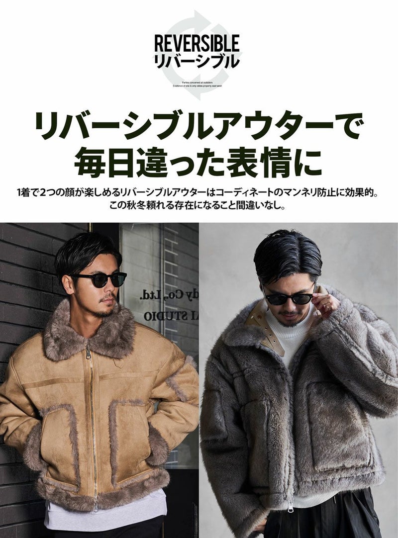 柔らかなボア面と上品なスエードタッチ面の両方を楽しめる、リバーシブル仕様のジャケットです。