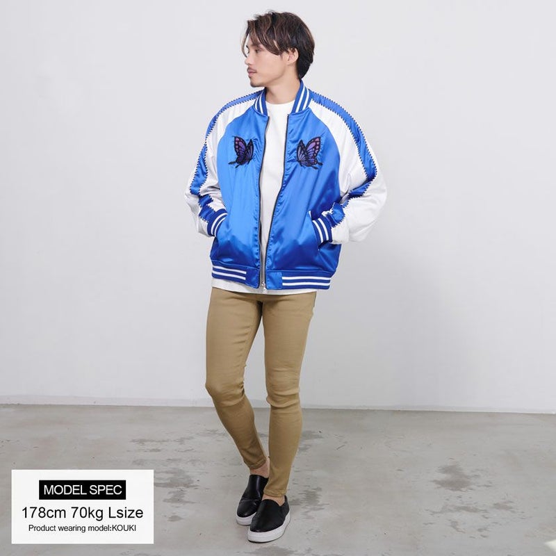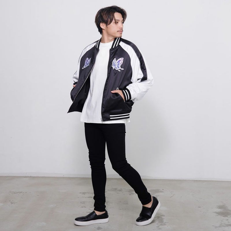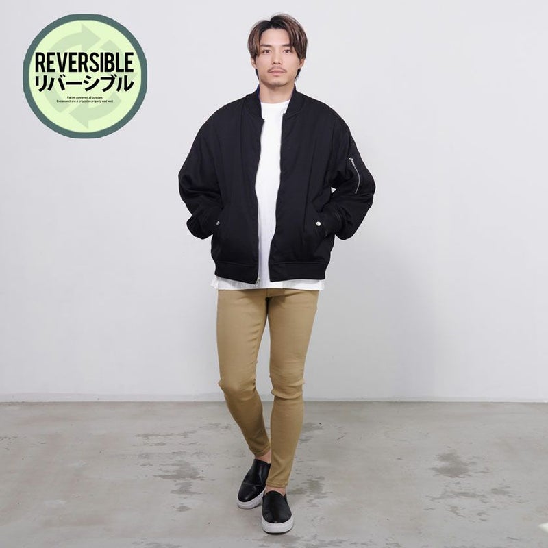 カジュアルアイテムとの相性抜群なスカジャン、ベーシックなデザインなMA-1は一着で幅広い着こなしができるオススメのアウターです