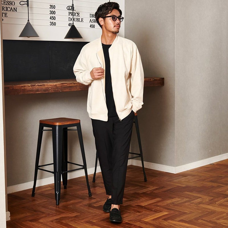 ワイド系のパンツや細身のスキニーパンツと合わせれば大人ストリートスタイルに。
