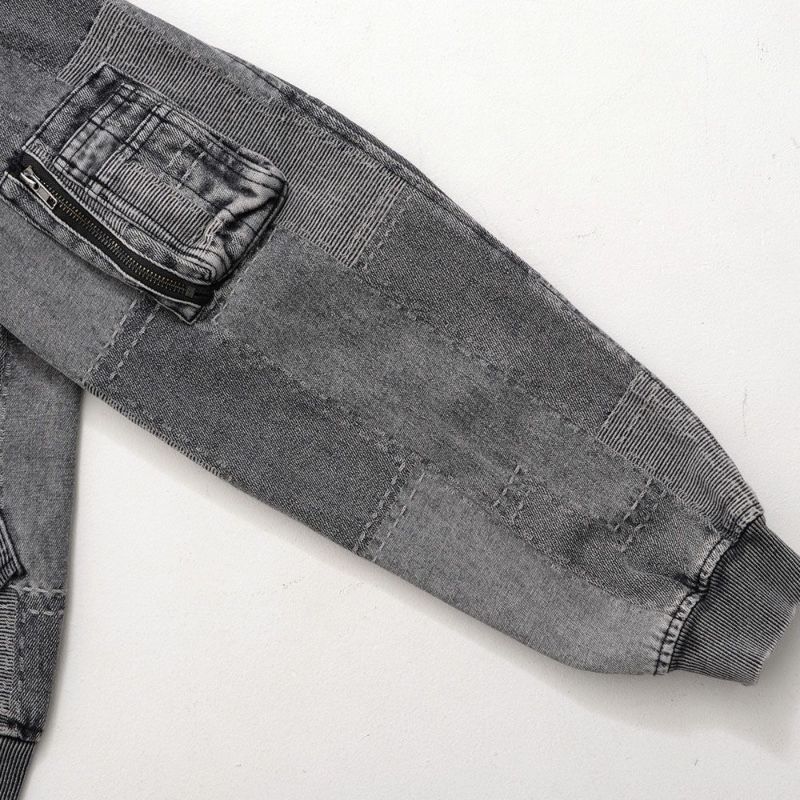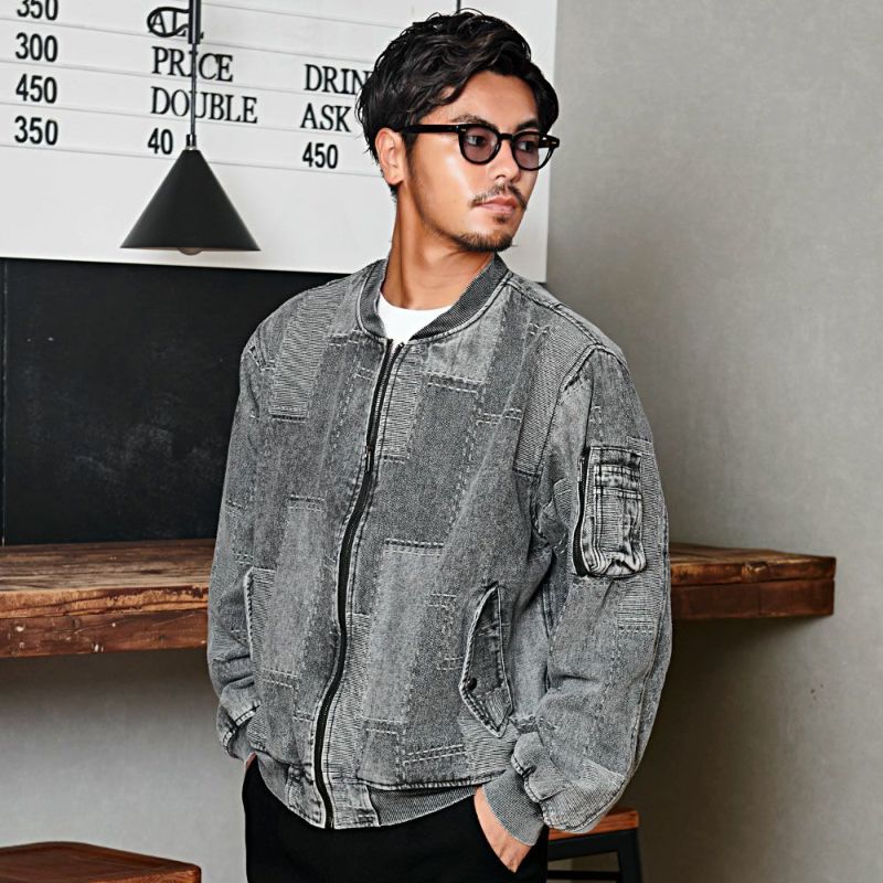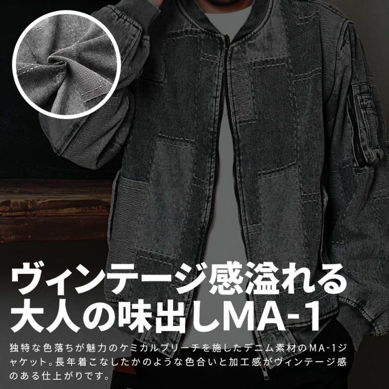 独特な色落ちが魅力のケミカルブリーチを施したデニム素材のMA-1ジャケット。