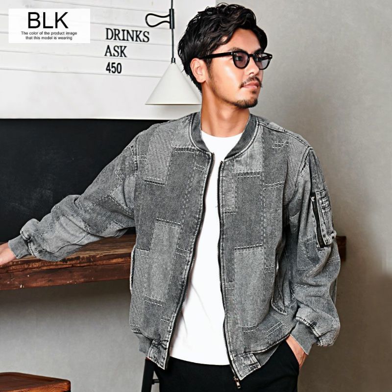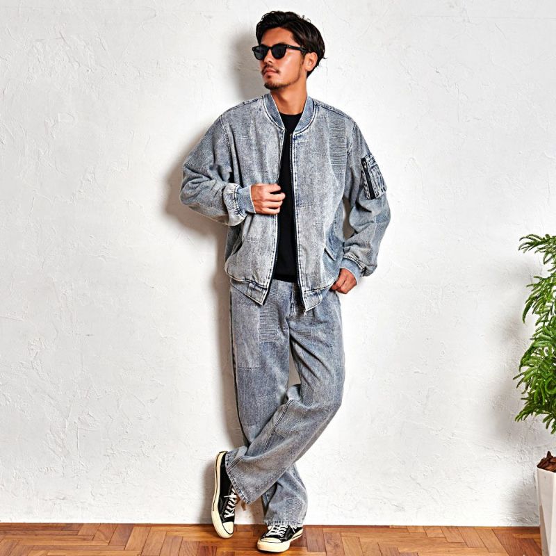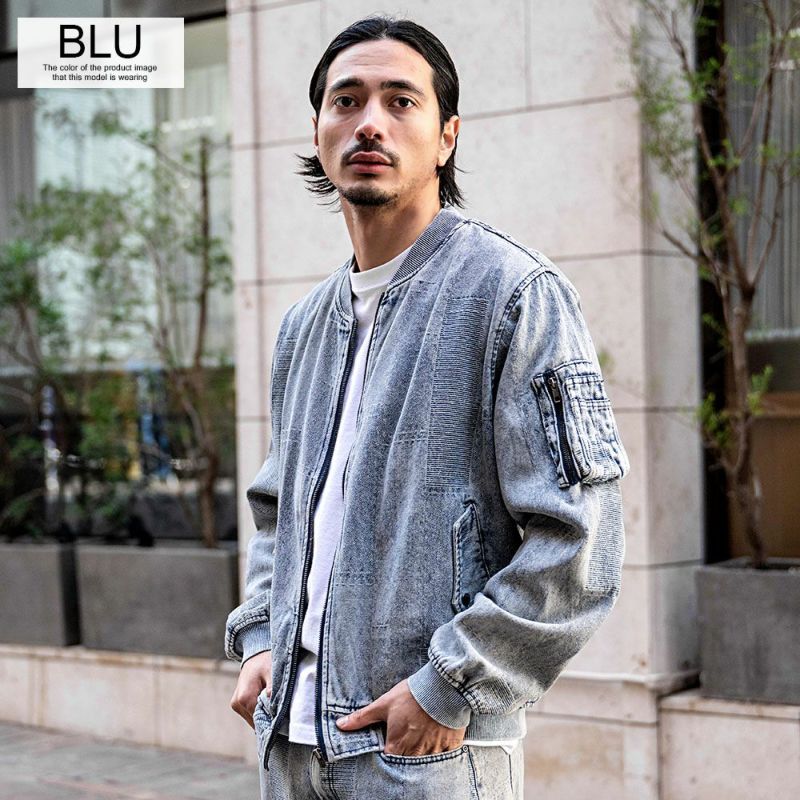 MA-1 メンズ おしゃれ MA-1ジャケット MA1 デニムジャケット ブルゾン 古着風 ヴィンテージ ビンテージ ジャガード ビッグシルエット オーバーサイズ CavariA(キャバリア)ジャガードデニムケミカル加工MA-1/全2色