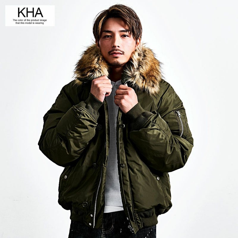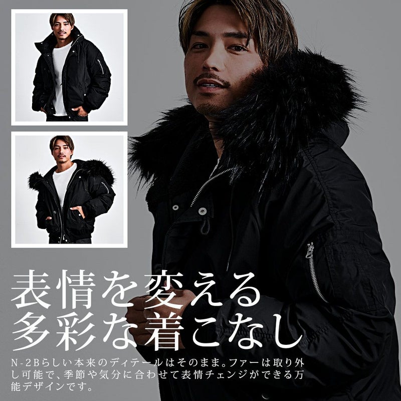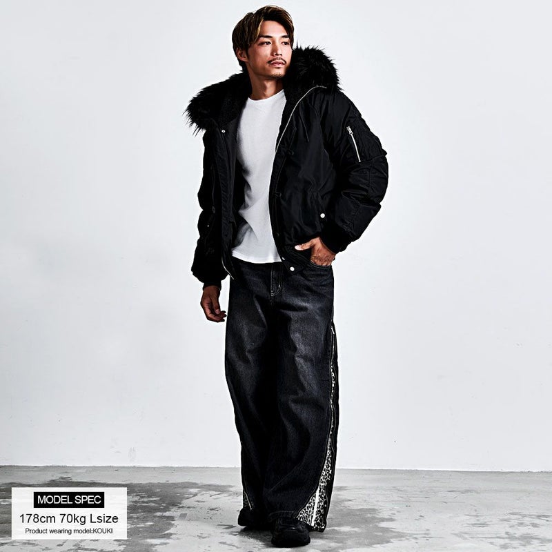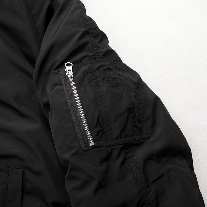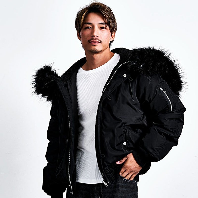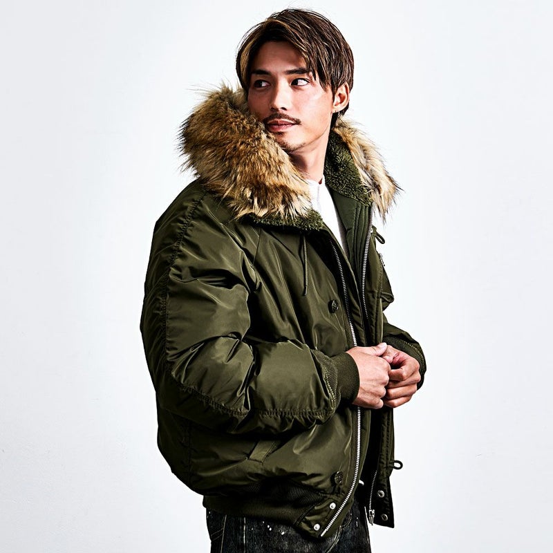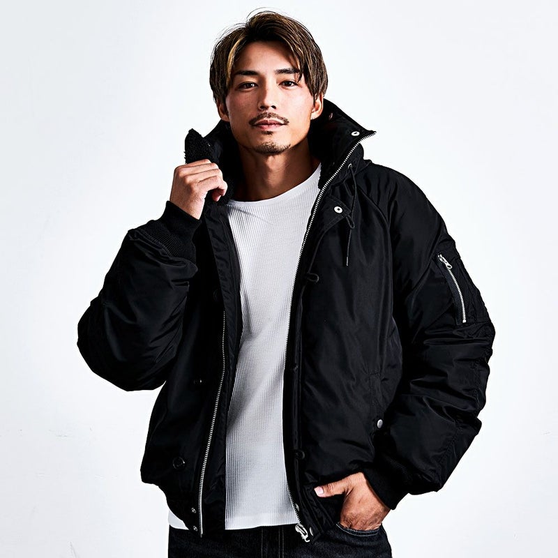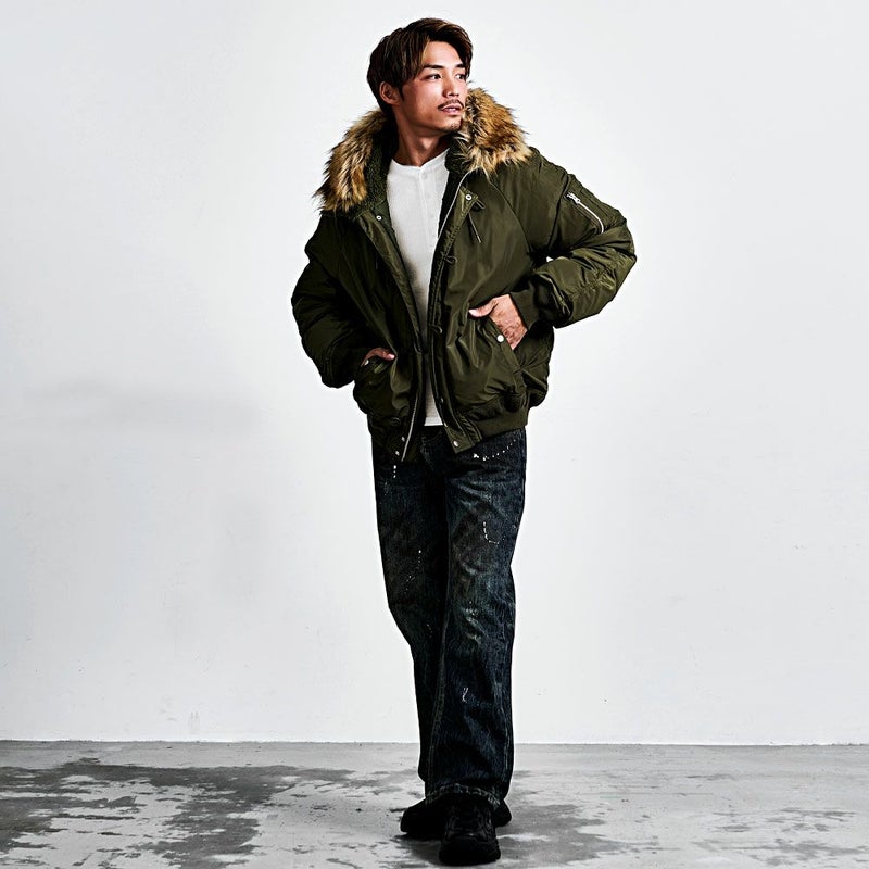 N-2Bの無骨なミリタリーデザインを活かしつつ、シルエットはゆったりとしたビッグで、着丈はあえてコンパクトに。