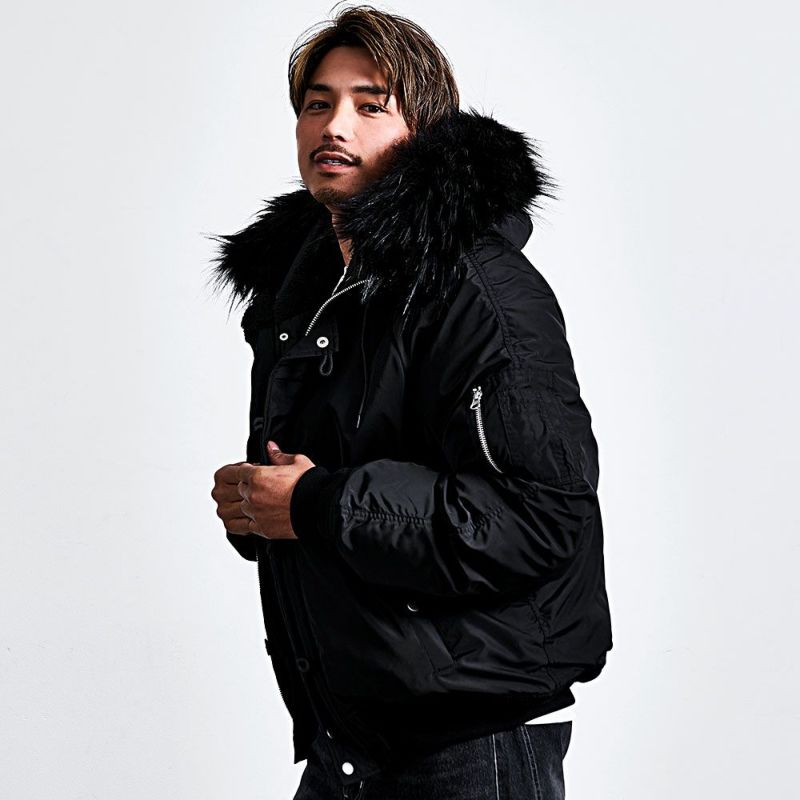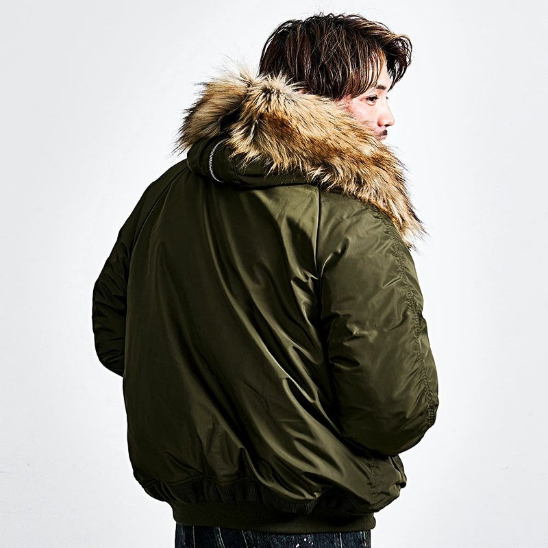 フード裏のボア、比翼フロント、袖&裾リブ、内ポケットなどN-2Bらしい本来のディテールはそのまま。