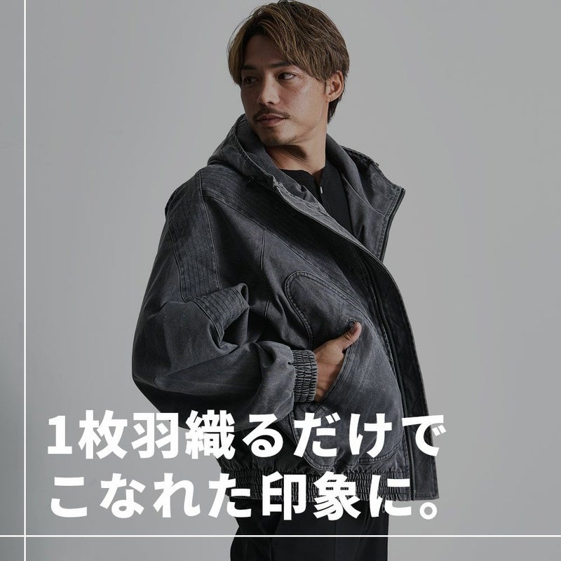 インナーもロンT・スウェット・ニット・ハーフジップまで相性抜群で、着こなしのバリエーションが無限に広がります。