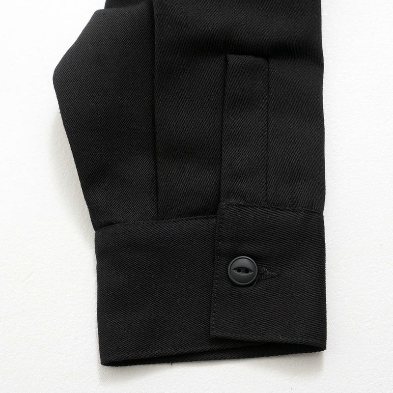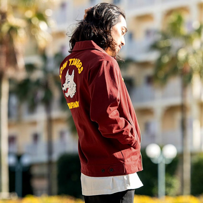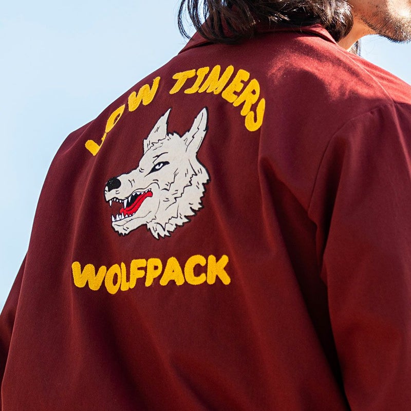 胸元や袖にあしらわれた印象的な狼のワッペンが、スタイルにアクセントをプラス。