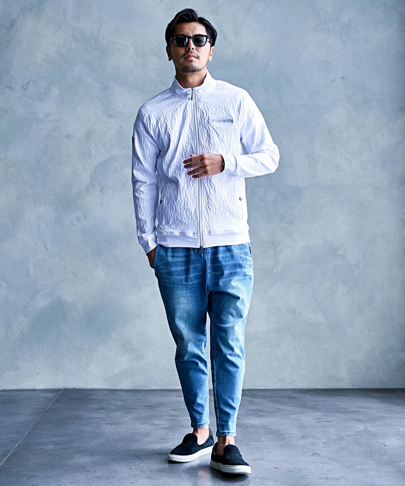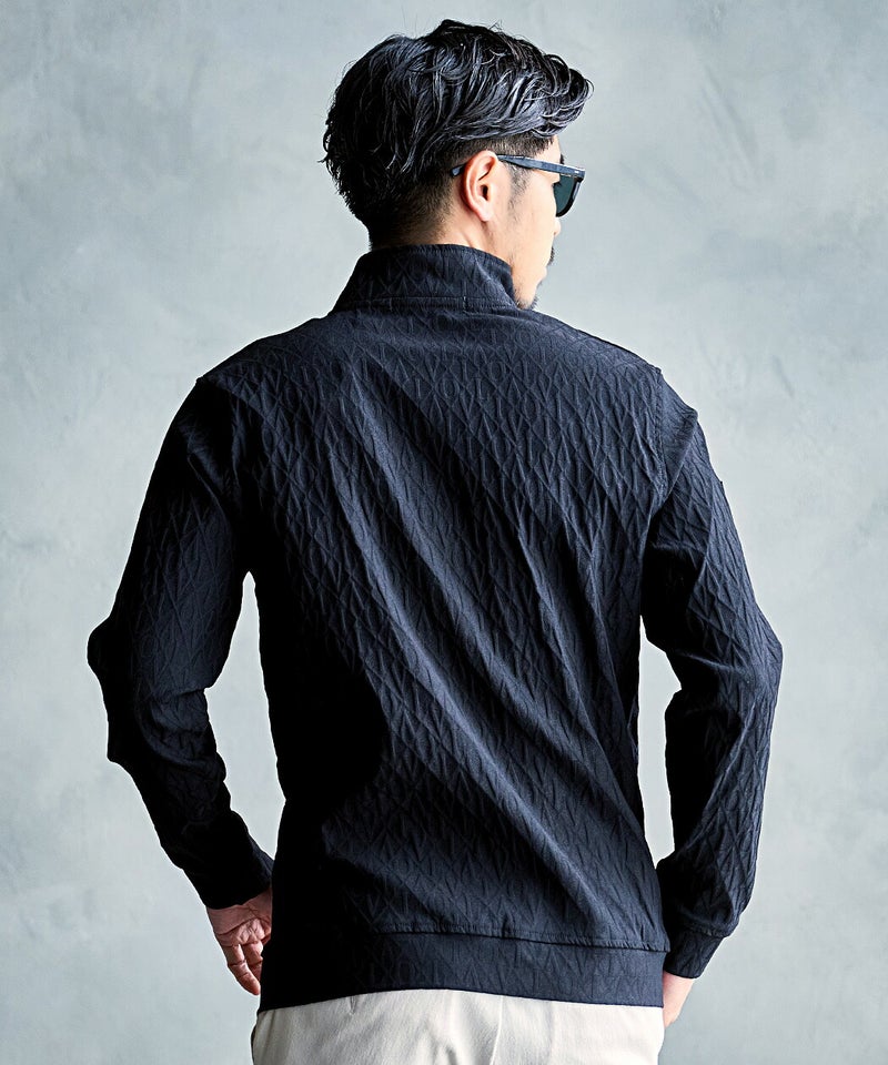 スタンドネック仕様が首元をシャープに見せ、全体の印象を引き締めます。