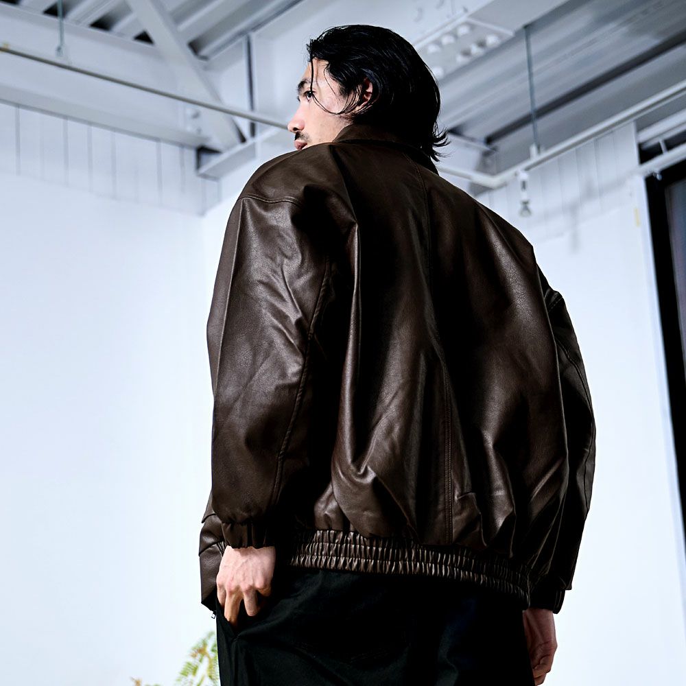 ベジタブル加工を施したPUレザー素材を使用したブルゾン。