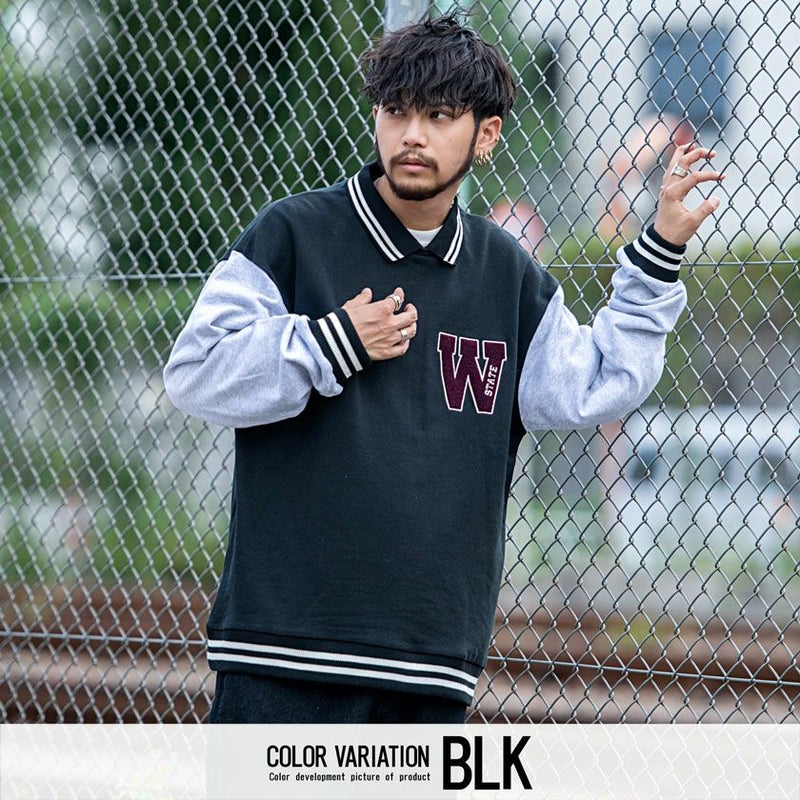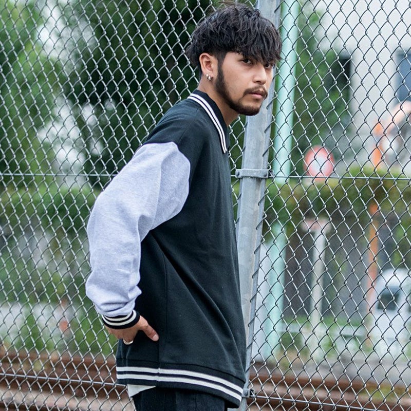 スタジャン風の長袖スウェット。