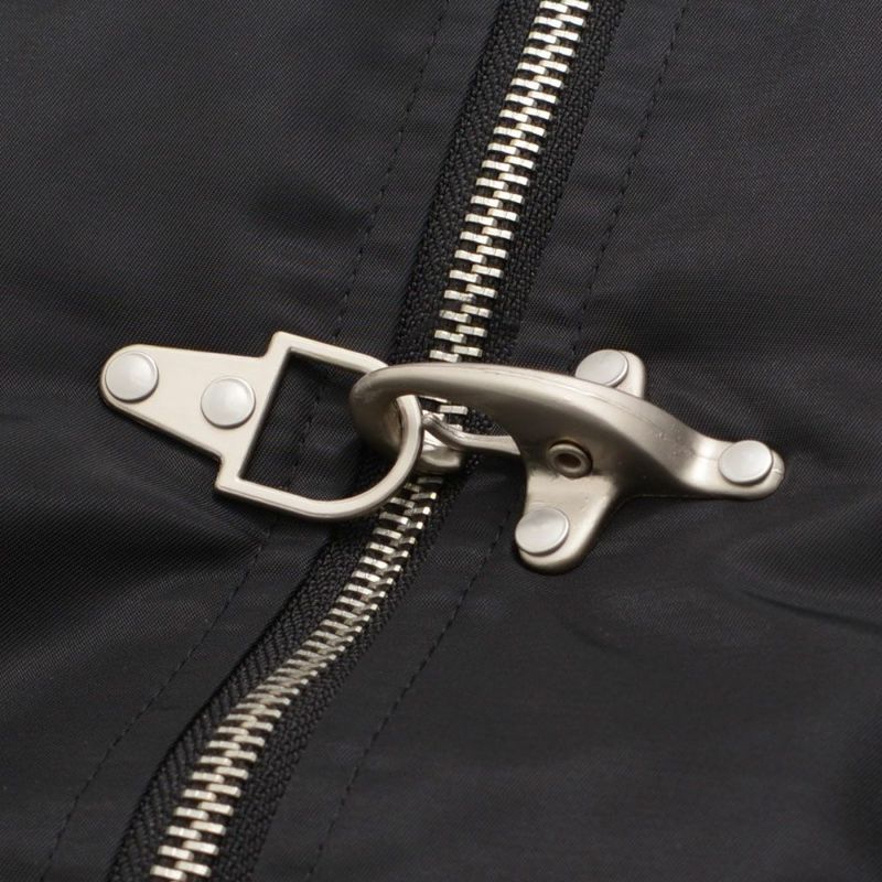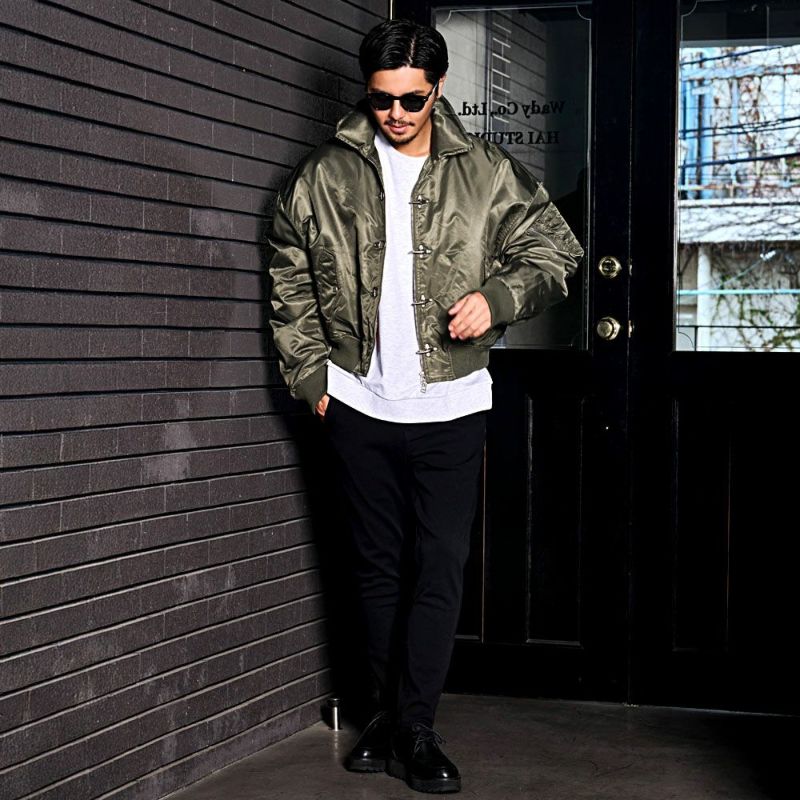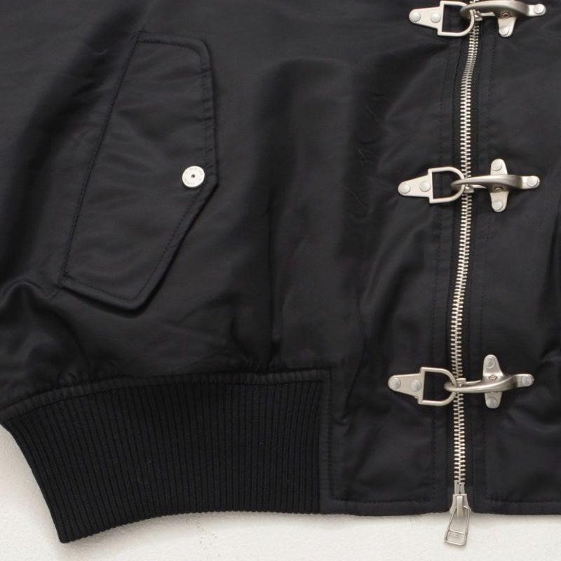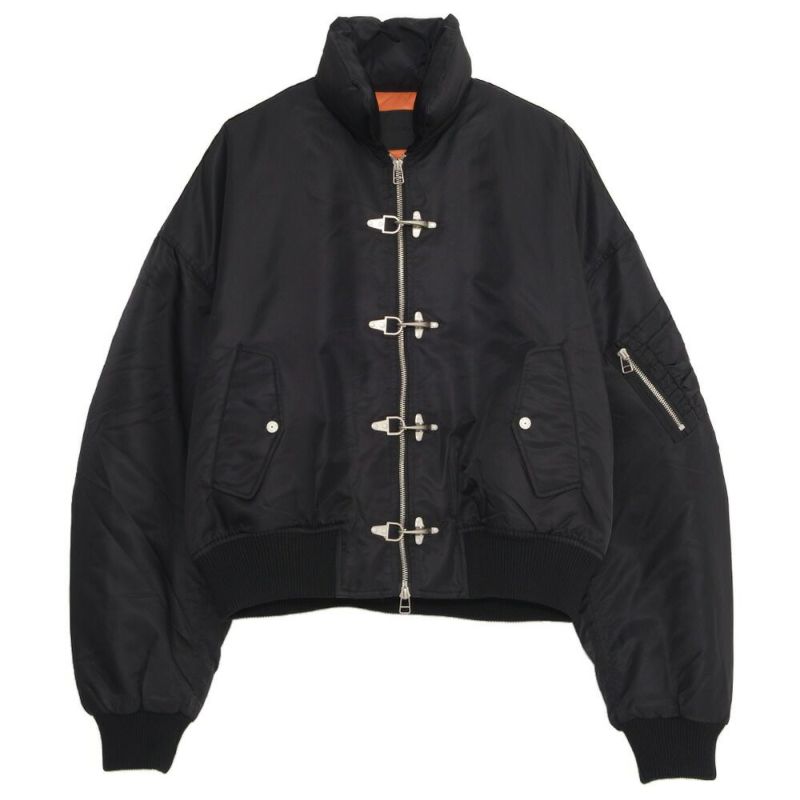 ボリュームのあるアームとショート丈のMA-1シルエットに、フロントのファイヤーマンフックがトレンドらしさを加速。