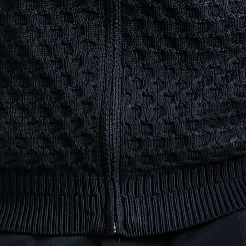 立体感のあるケーブル編みと品のあるジップアップデザインを組み合わせた贅沢仕様。