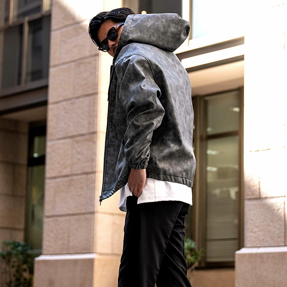 他の画像を見る リアルなシボ感を再現したPUレザー素材を使用し、高級感のある仕上がりに。ムラ感のあるケミカル加工を施し、独特な色落ちを表現することで、ヴィンテージの風合いを楽しめる一着。 CavariA(キャバリア)ケミカルPU ZIP長袖パーカー/全3色 販売価格 ¥ 9,900 税込 カートに入れる お気に入りに登録する