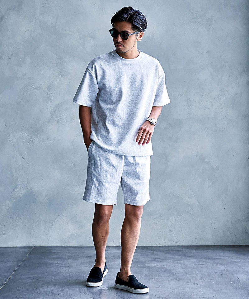 シンプルなデザインでありながら、上下で統一感のあるスタイリングが完成するセットアップアイテム。