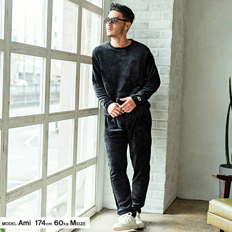 ボアトレーナーとボアパンツのセットアップ。
