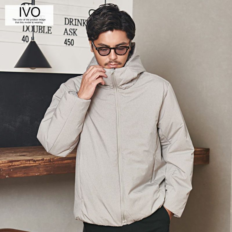 滑らかな表面にマットな質感の多機能素材!ノーキルト中綿フードジャケット。