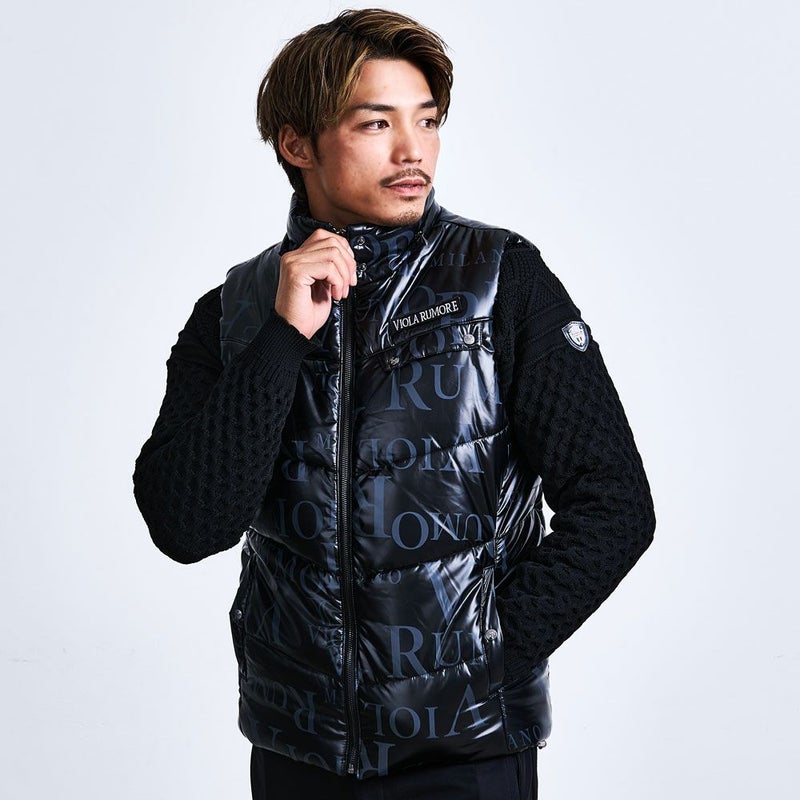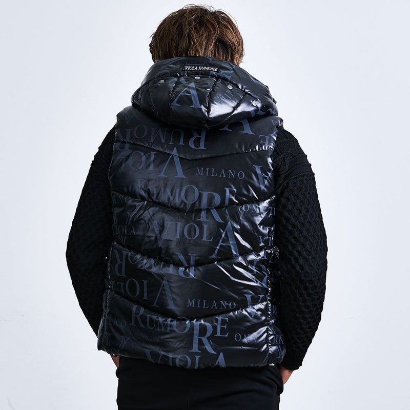 存在感抜群のオリジナルロゴプリントを全面に施した、まさに“主役級”の中綿ベスト。