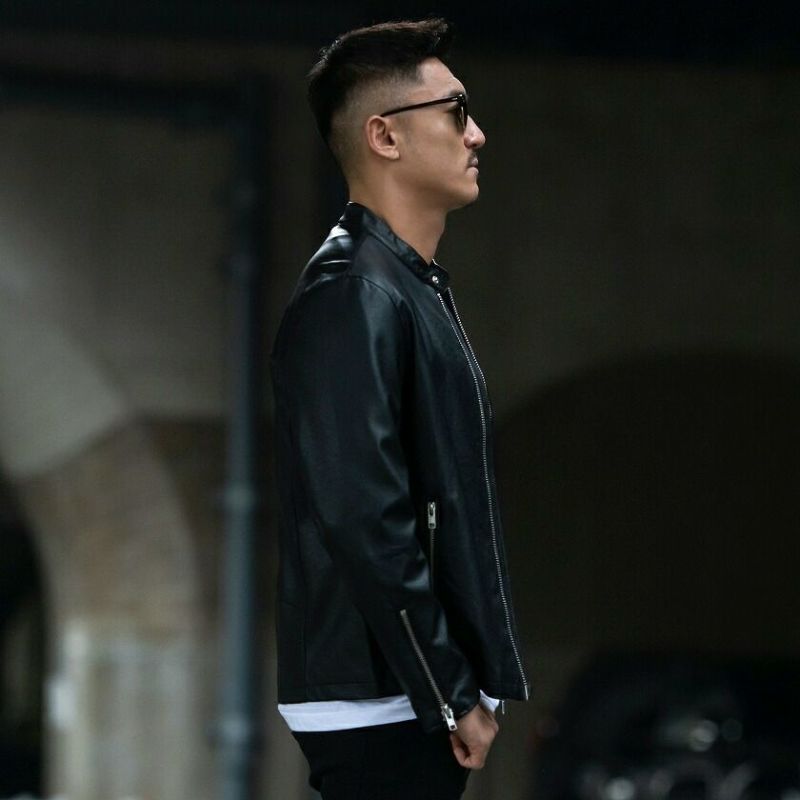 首元はシングルライダース定番のバンドカラーを採用し男らしい仕上がりに。
