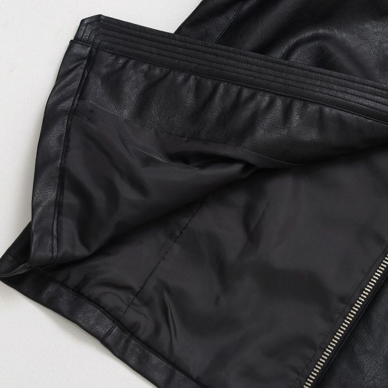 本革に引けを取らないPUレザーを採用し、軽く動きやすい合成皮革ならでは良さも活かしたライダースジャケット。