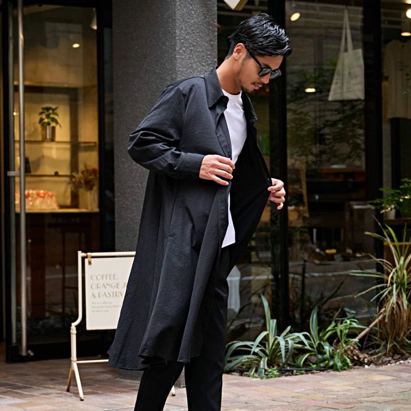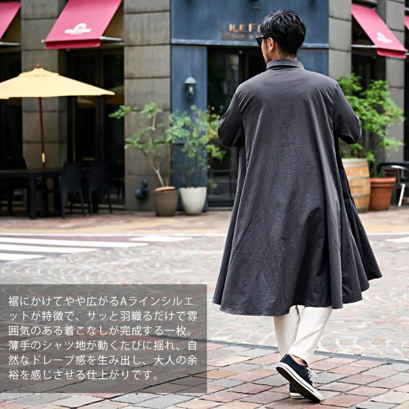 裾にかけてやや広がるAラインシルエットが特徴で、サッと羽織るだけで雰囲気のある着こなしが完成する一枚。
