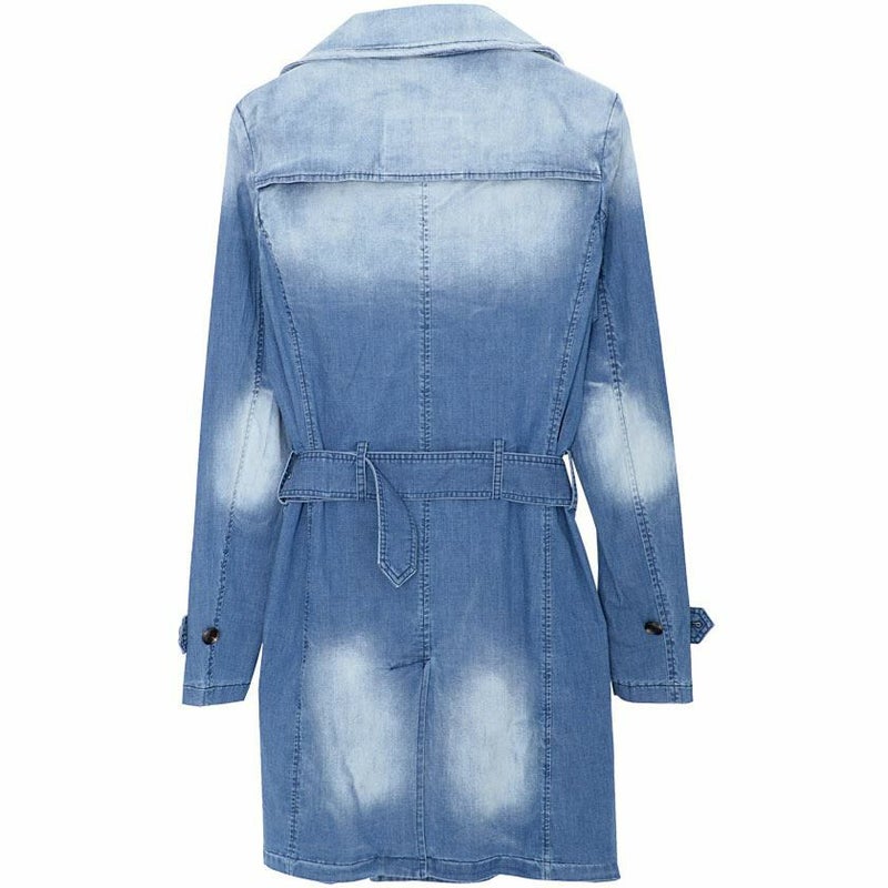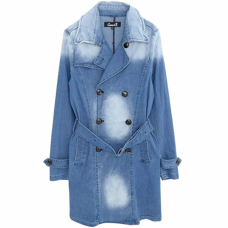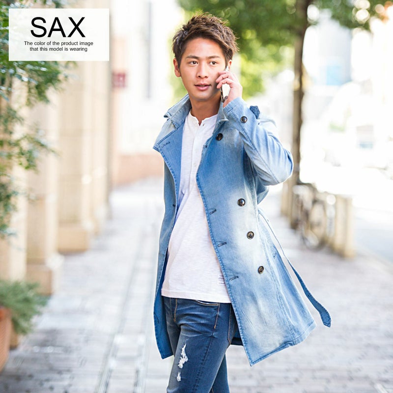 伸縮性のある素材を使用し着心地の良さが魅力のデニムトレンチコート。